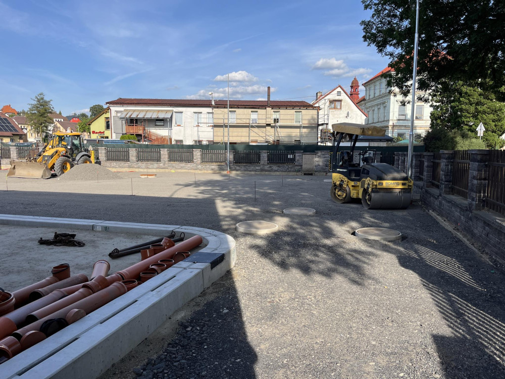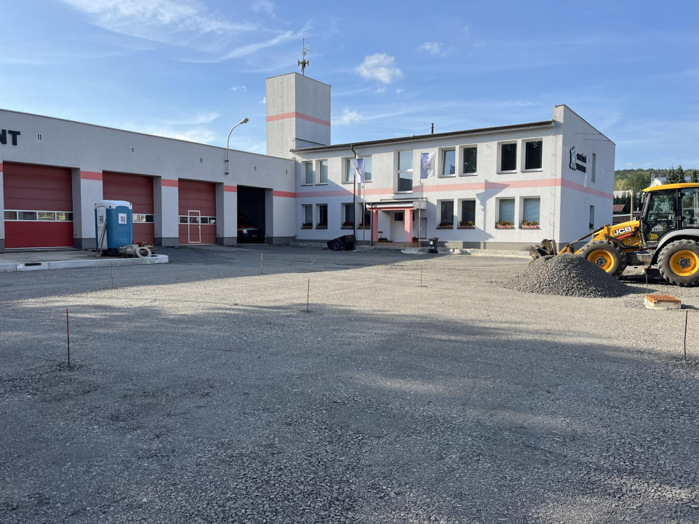 Oprava plochy před hasičárnou ve Frýdlantě finišuje pokládkou asfaltu. Práce uzavřou část Okružní ulice