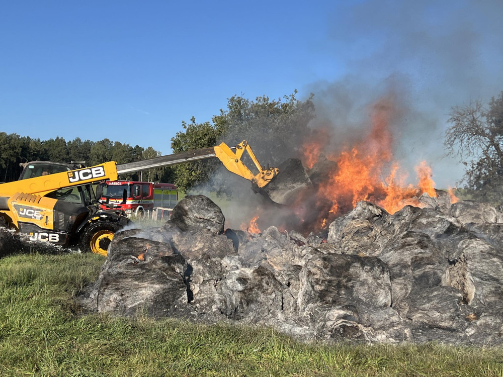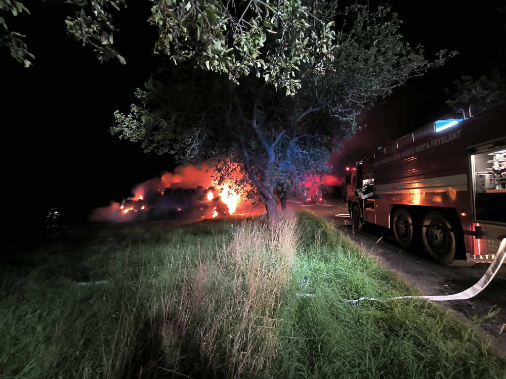 V Bulovce v noci hořelo na 250 balíků sena, cizí zavinění bude zkoumat vyšetřovatel