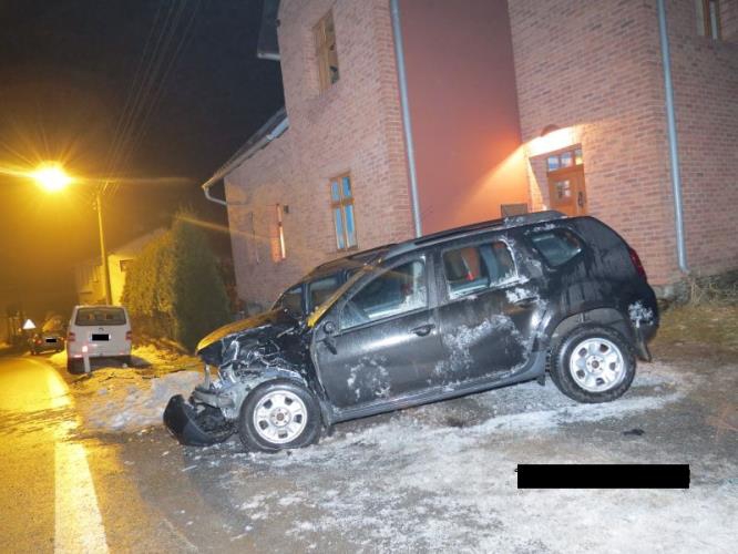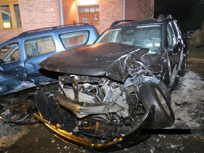 Kochající se řidička nabourala dvě Dacie a dům. Foto: Policie ČR