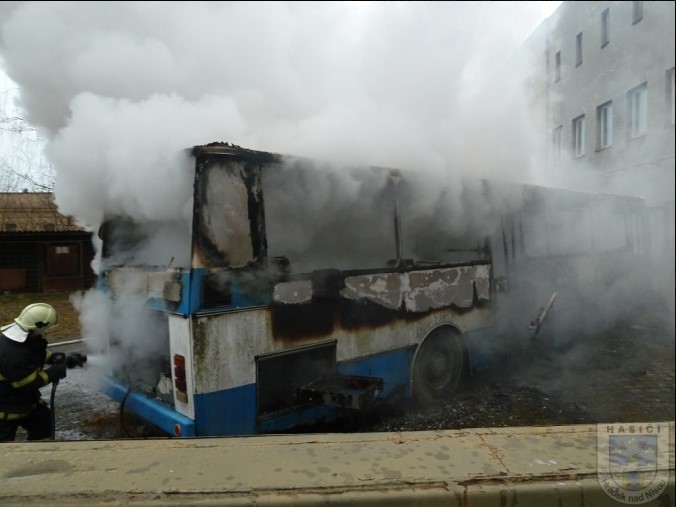 V bývalé Koloře hořel odstavený autobus. Foto: Hasiči Hrádek nad Nisou