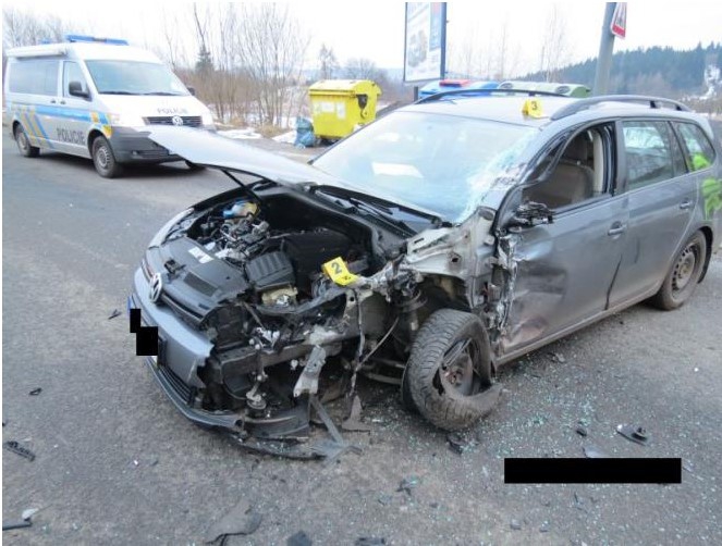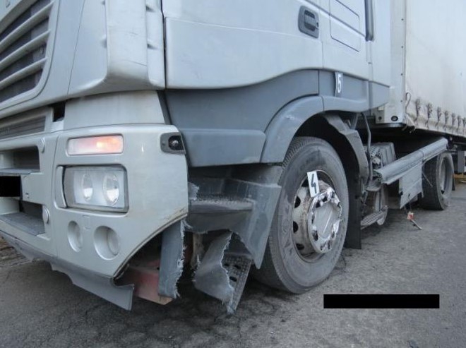 Nepozorný řidič vjel přímo pod kamion. Škoda je čtvrt milionu. Foto: Policie ČR