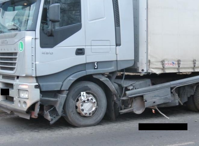 Nepozorný řidič vjel přímo pod kamion. Škoda je čtvrt milionu