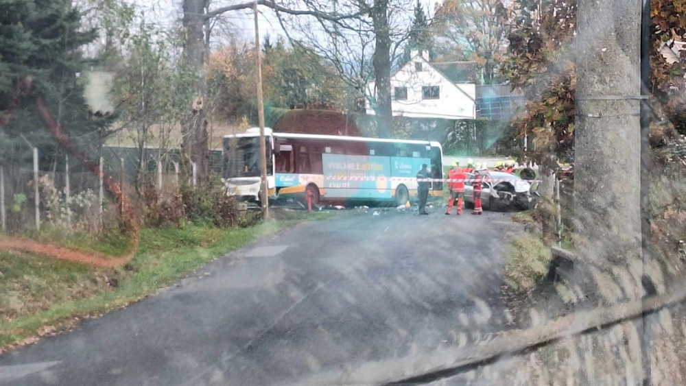 V Minkovické ulici v Liberci Doubí zemřel po nehodě automobilu a autobusu MHD řidič osobního vozu