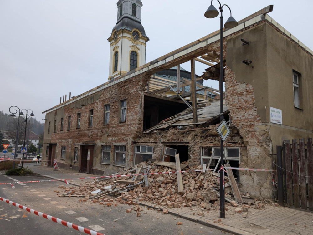 U náměstí v Novém Boru se zřítila část budovy bývalé restaurace Pošta