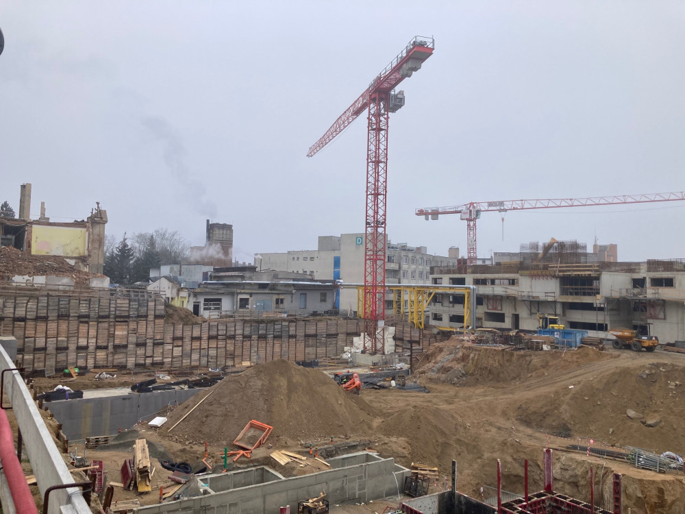 Do rozestavěného Centra urgentní medicíny bude stěhovat technologii vytápění obří jeřáb, uzavřena je kvůli tomu Jablonecká ulice