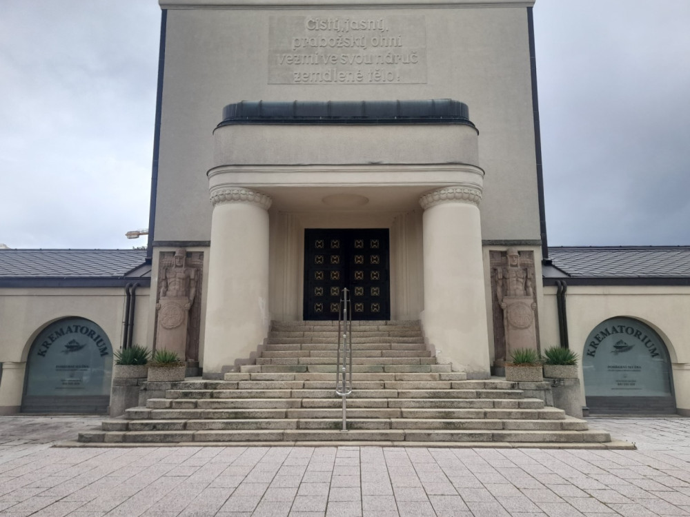 Vstupní dveře krematoria září novotou, Liberec chystá další úpravy celé budovy. Usiluje v něm i o výtah