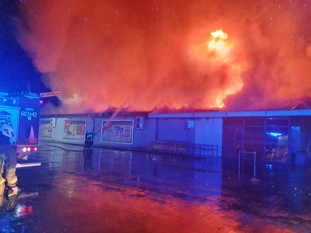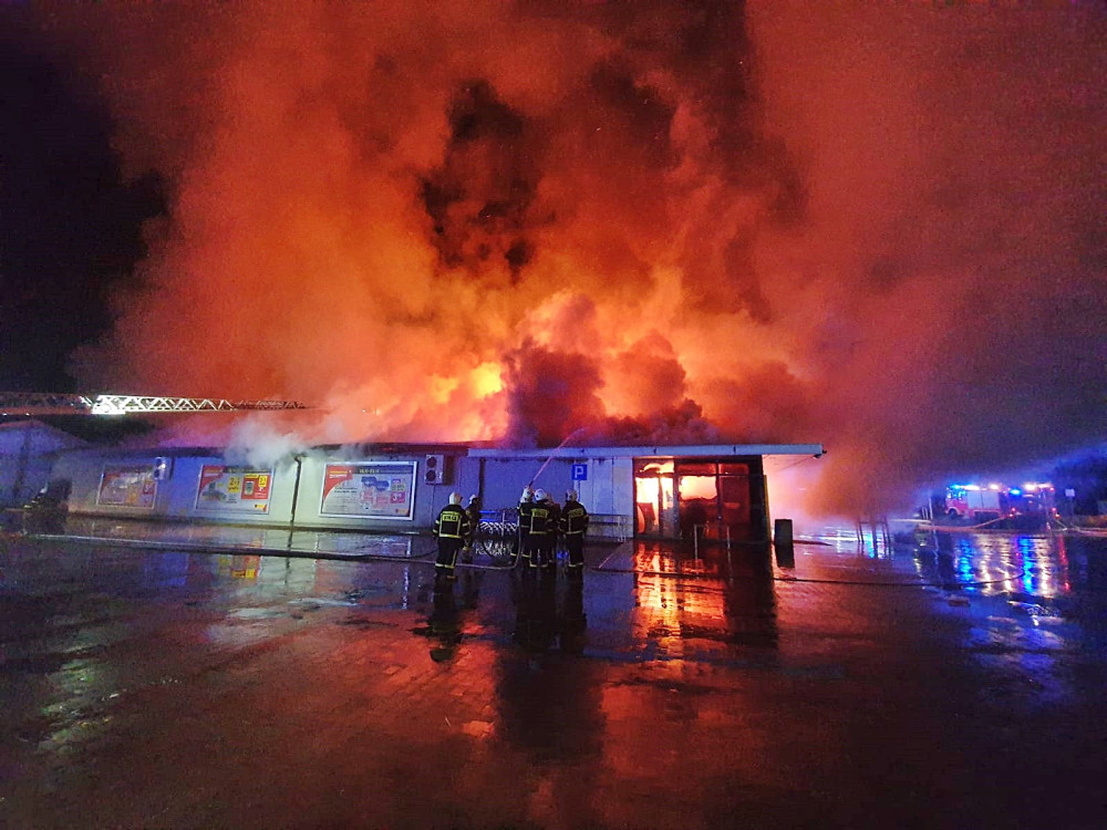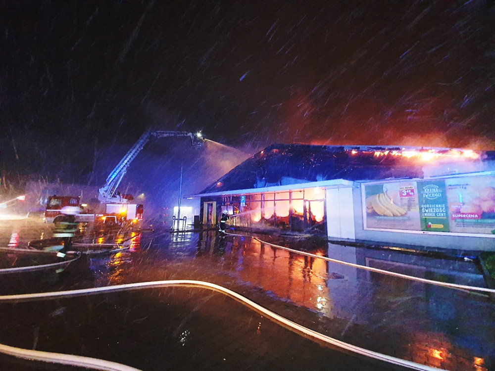 Kousek za polskými hranicemi u Habartic shořela v Zawidowě prodejna potravin Biedronka, oblíbený cíl českých zákazníků