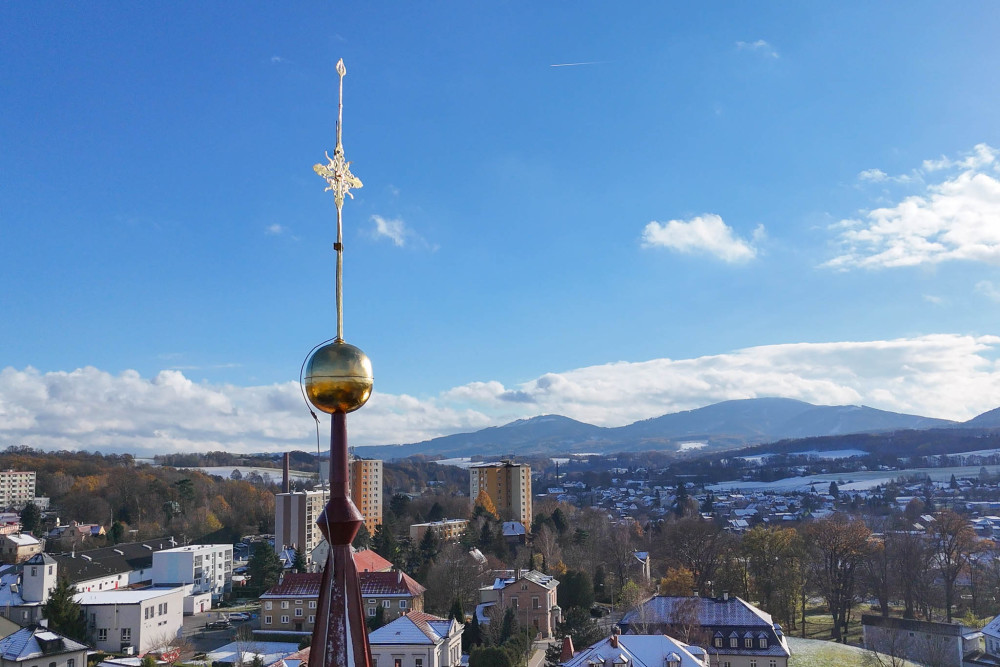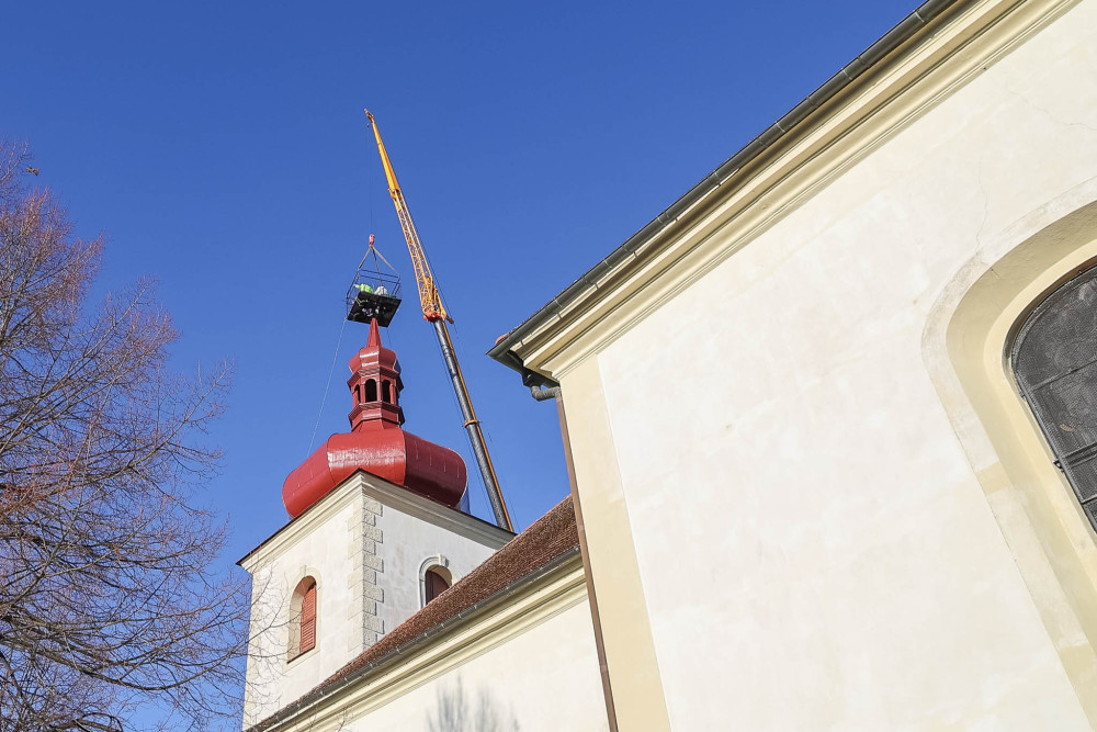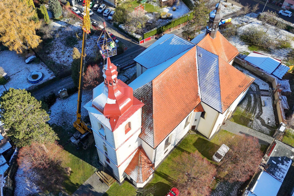 Na kostel sv. Bartoloměje v Hrádku se po restaurování vrátila vrcholová makovice s křížem