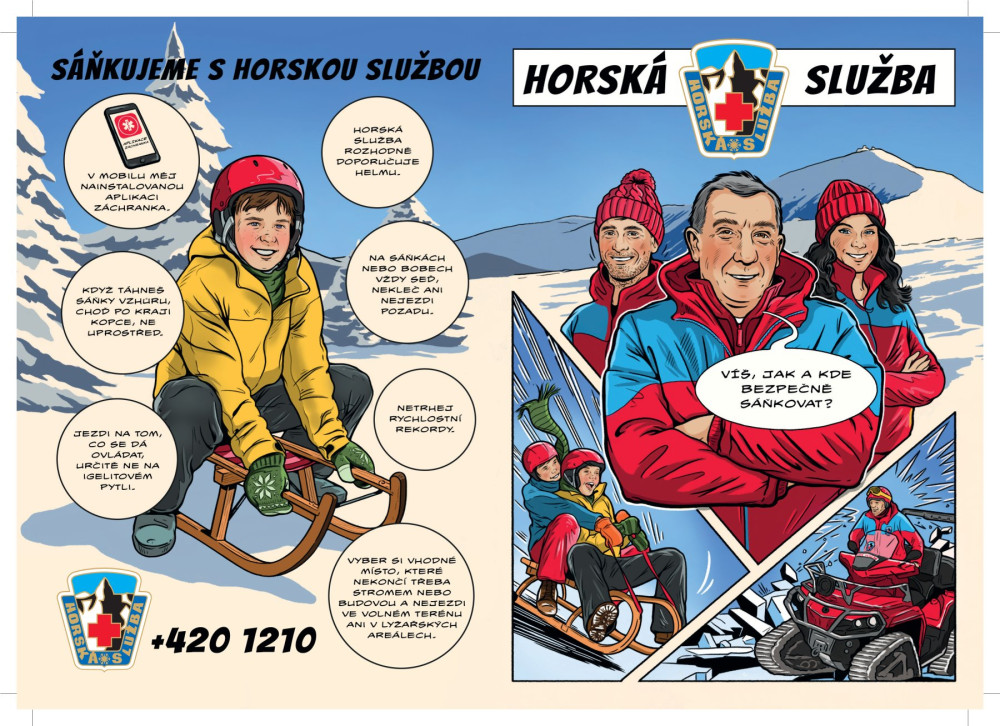 Komiks Horské služby si tentokrát vzal na mušku nebezpečné sáňkování