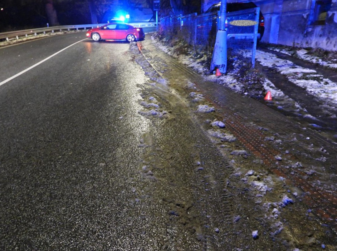 Řidič v Liberci brzy ráno nezvládl jízdu a narazil do sloupu. Nadýchal dvě promile