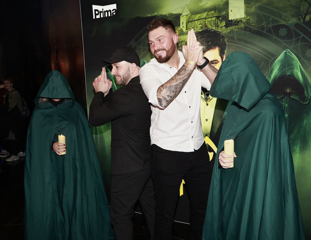 Martin Růžička (vpravo) na snímku z finálového promítání v pražském multikině, na fotce pózuje s dalším policistou Martinem "Obinnem" Obdržálkem