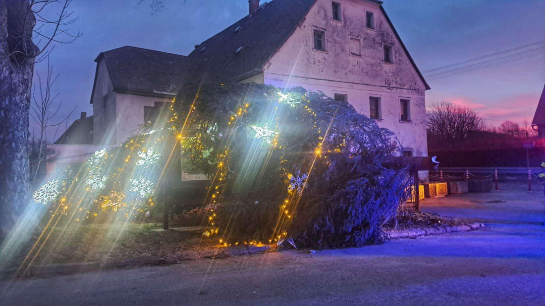 Silný vítr opět trápil Frýdlantsko. Ve Višňové zlomil vánoční strom obce, událost se obešla bez zranění
