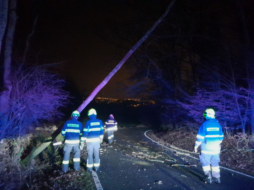 Hasiče v kraji potrápil v noci vít a sníh, nejčastěji řešili větve a stromy popadané na silnice