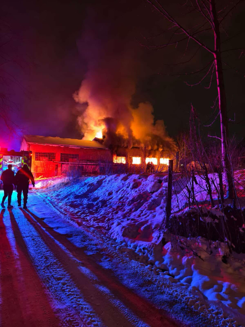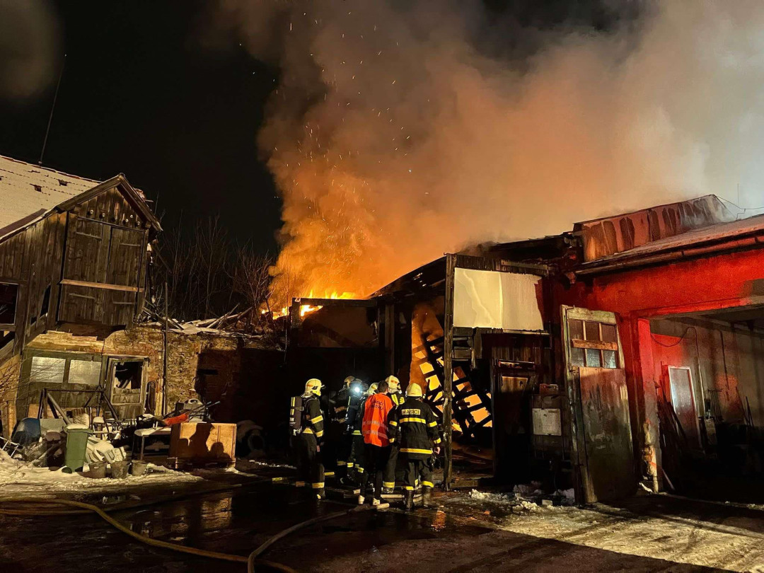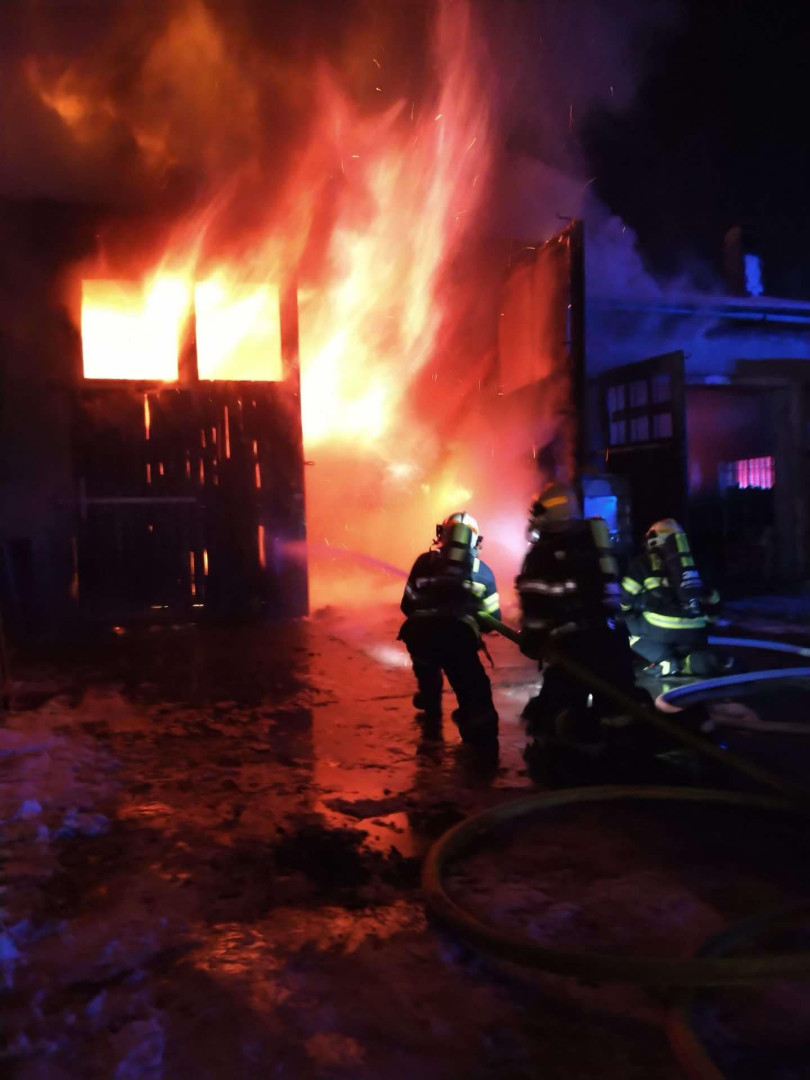 Rušná noc v Bulovce. Ze zemědělské budovy s technikou šlehaly plameny, zasahovalo 7 jednotek hasičů