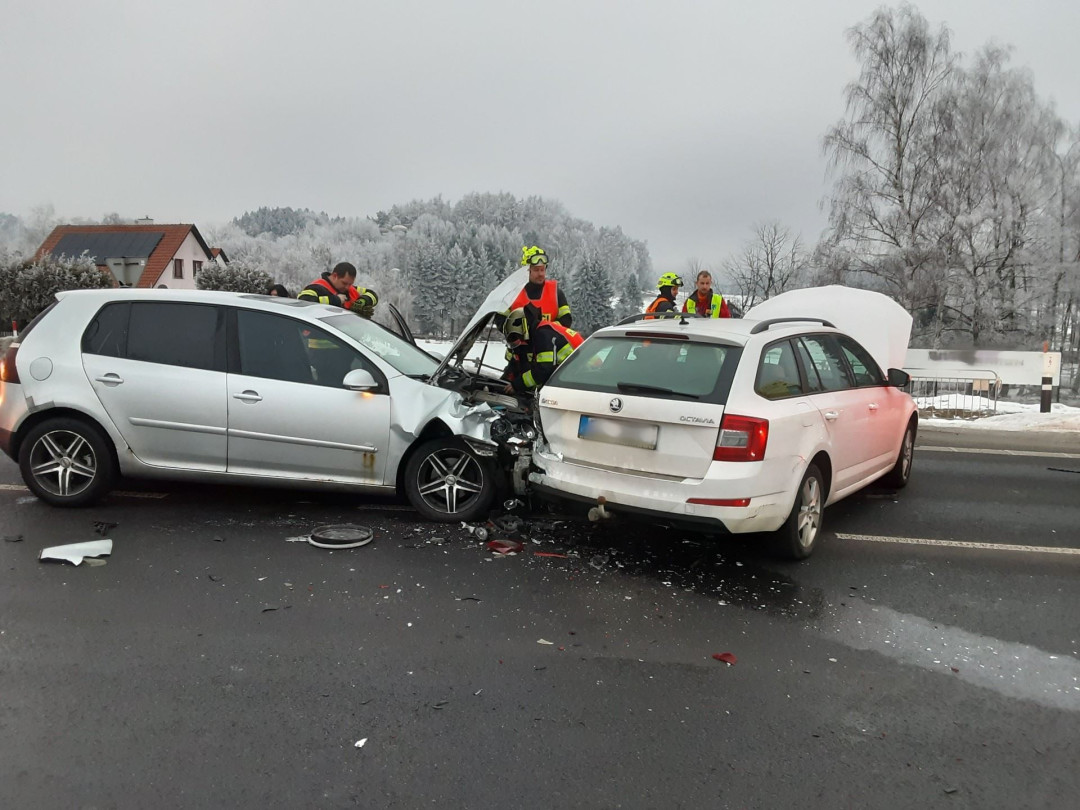 Srážka dvou aut u Svoru. První pomoc zraněnému poskytli hasiči