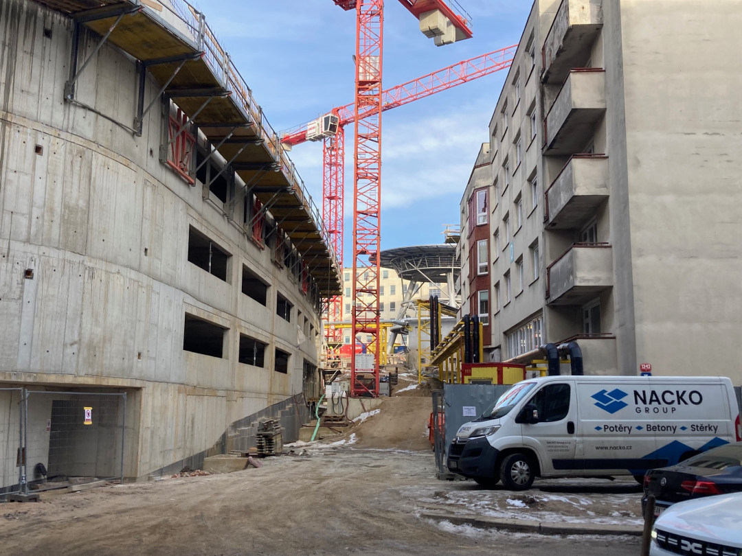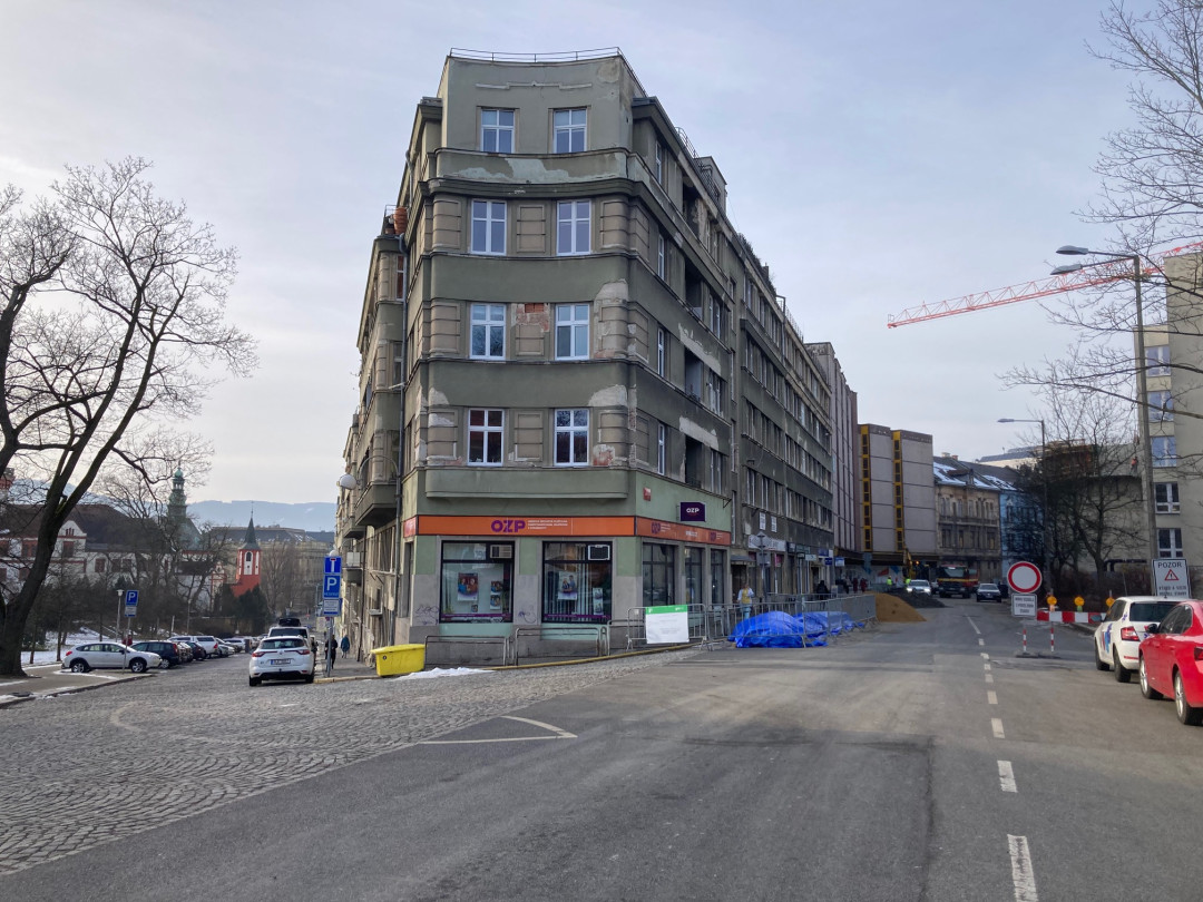Jablonecká ulice zůstane zavřená až do konce roku 2026, otevře se jen na příští zimu. Vjezd pro sanity a do parkovacího domu bude zajištěn