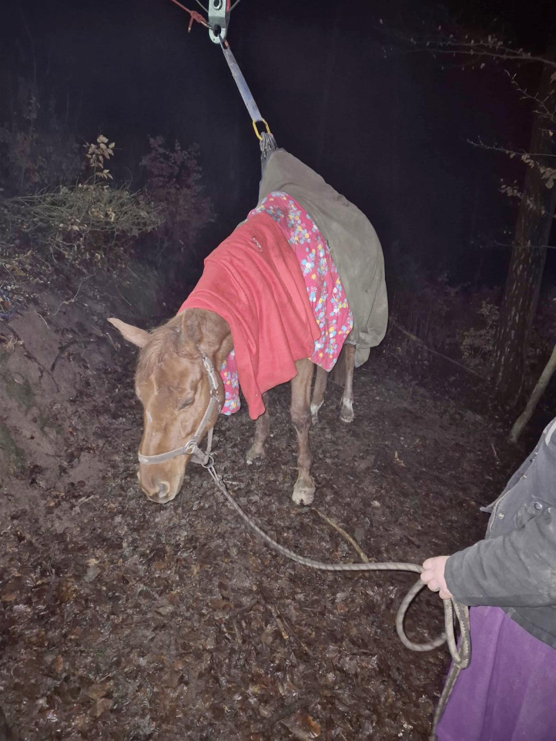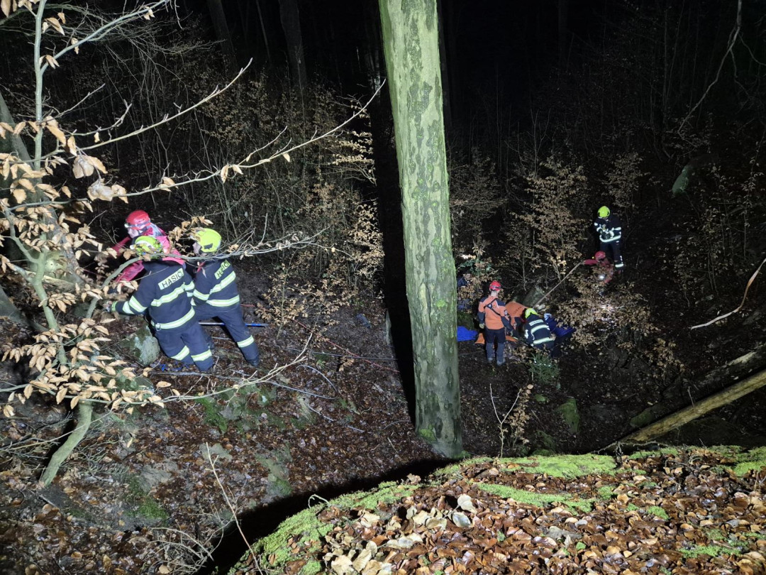 Noční zásah hasičů: s pomocí speciální záchranné sítě vytahovali v Českém ráji kobylu z 50 metrů hluboké rokle