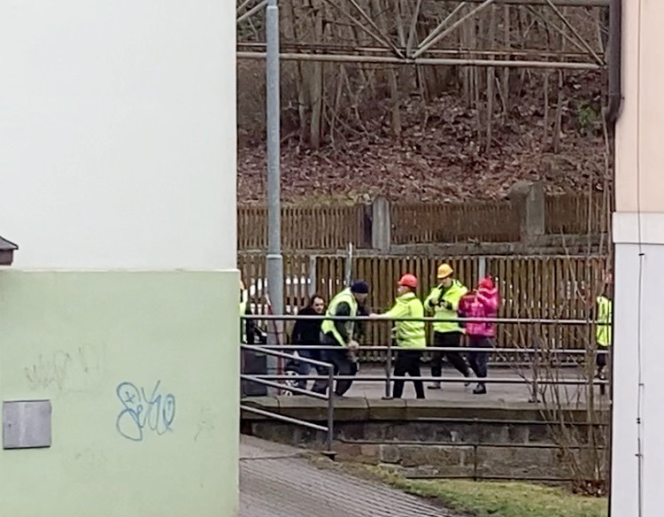 Rvačka těsně před startem bourání Textilany. Nezvládnuté emoce na chvíli odvedly pozornost od ramena bouracího bagru