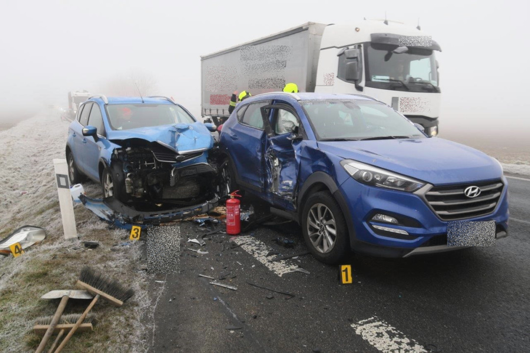 Řidička na namrzlé silnici dostala smyk, v protisměru narazila do auta