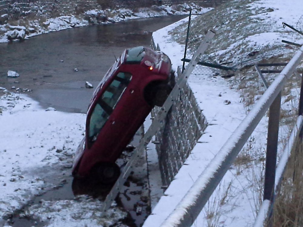 Auto řidička zapíchla přímo do koryta řeky. Foto: HZSLK
