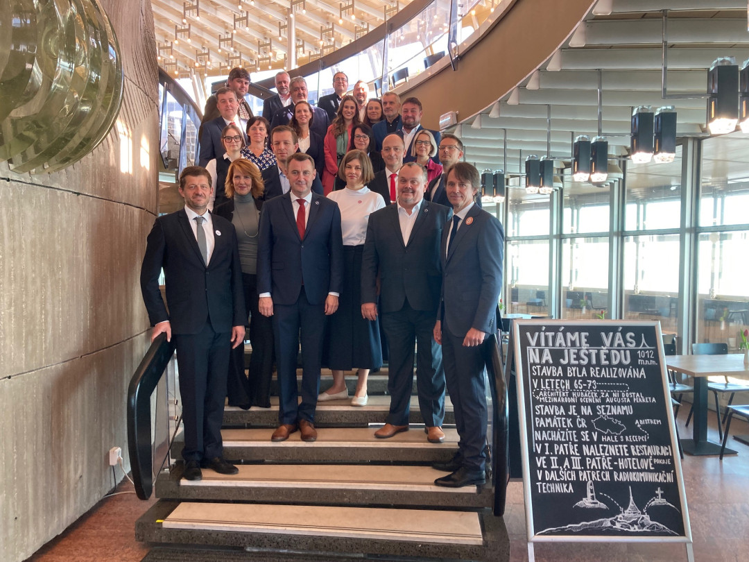 Koalice Starostů pro Liberecký kraj a Spolu při podpisu koaliční smlouvy na Ještědu.