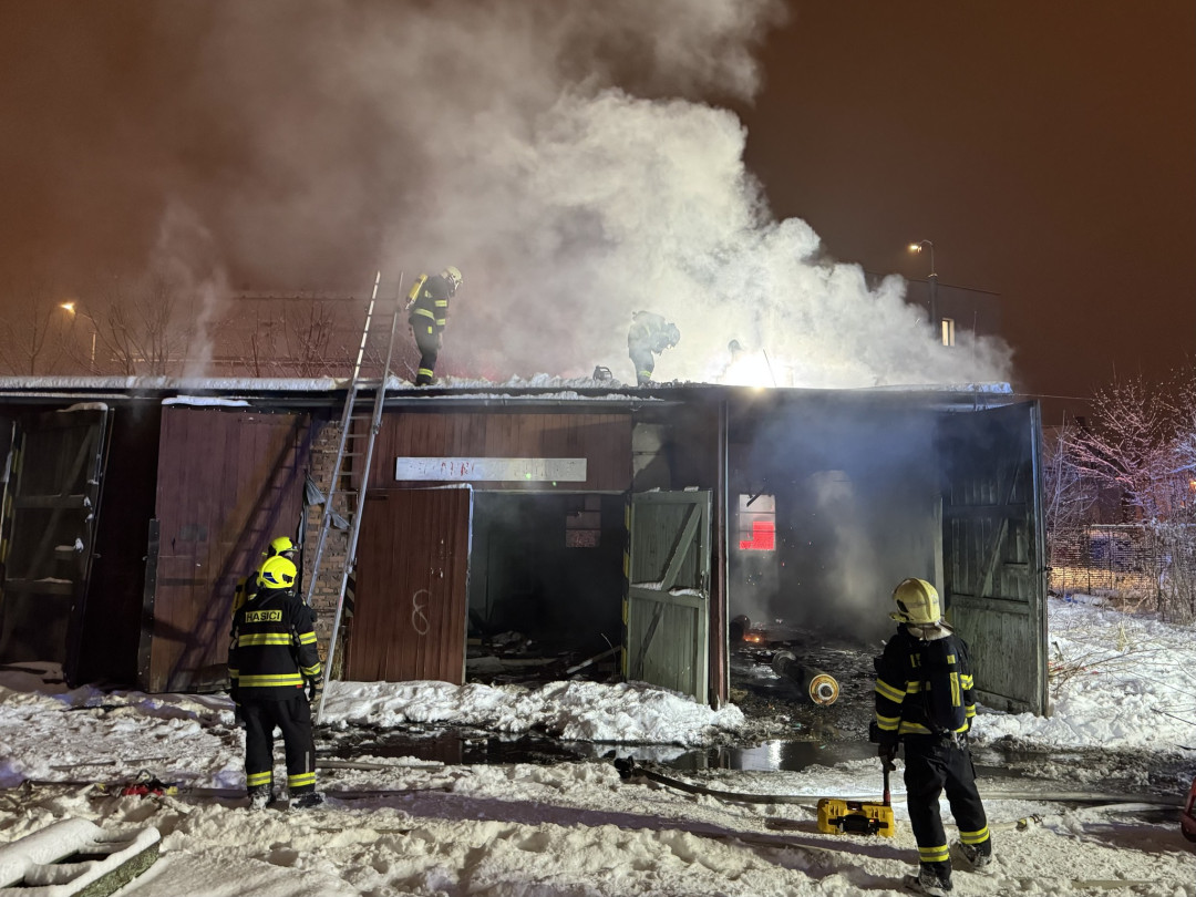 Zásah hasičů v Liberci. Nad ránem hořely garáže nedaleko vlakového nádraží