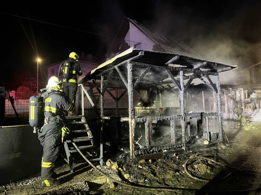Noční požár v Českém Dubu. Pergola u rodinného domu shořela