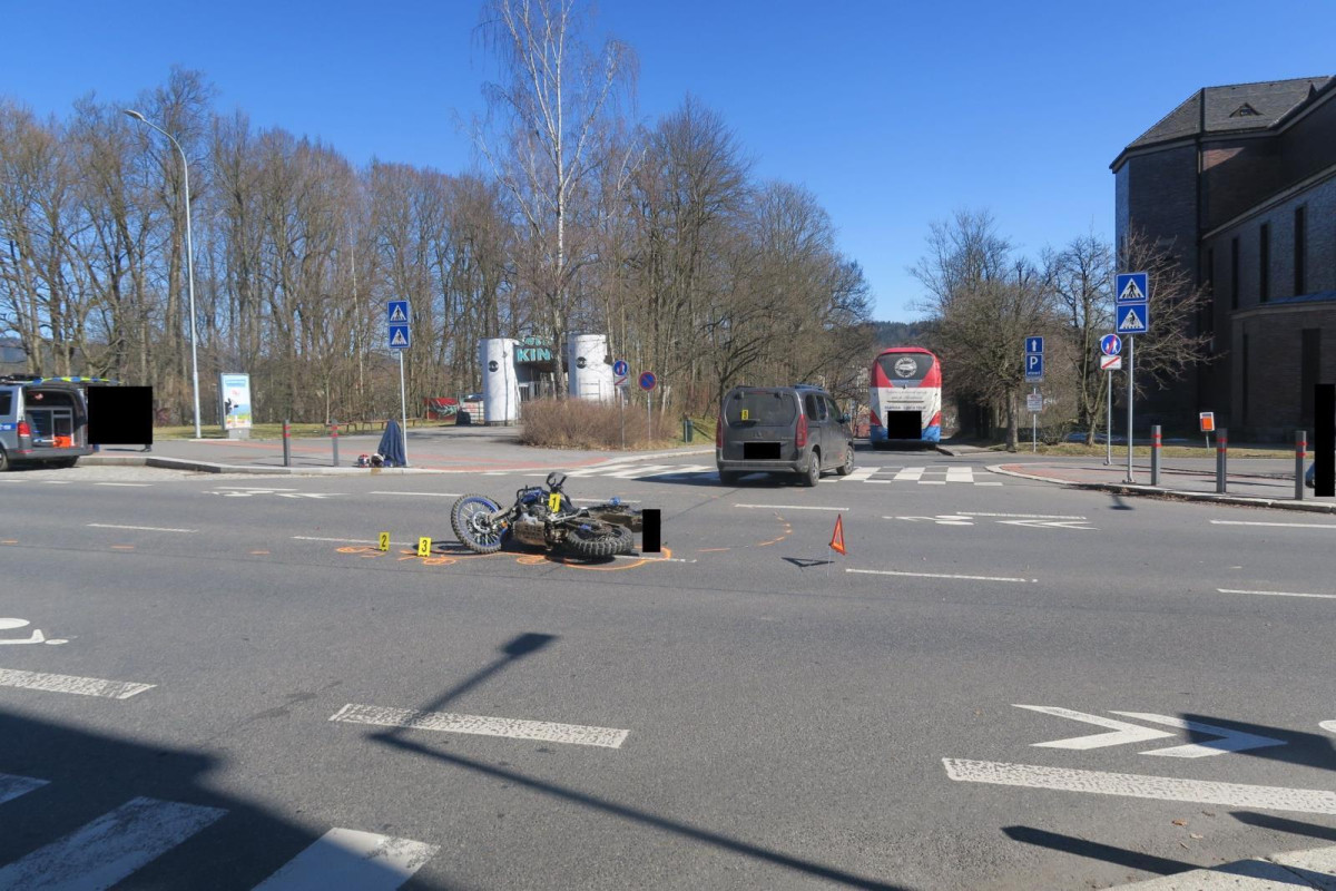 Nehoda u letního kina v Jablonci. Řidič auta nedal přednost motorce