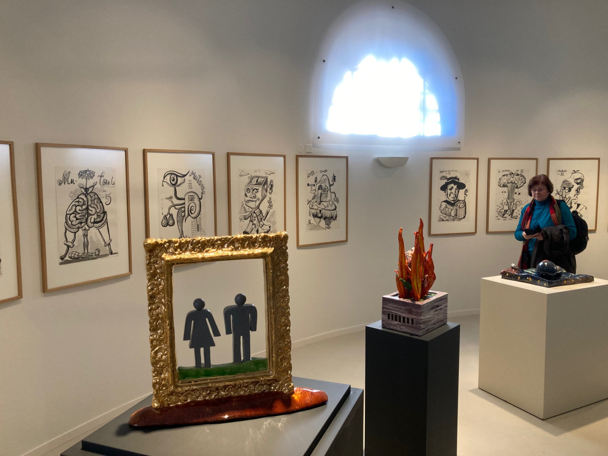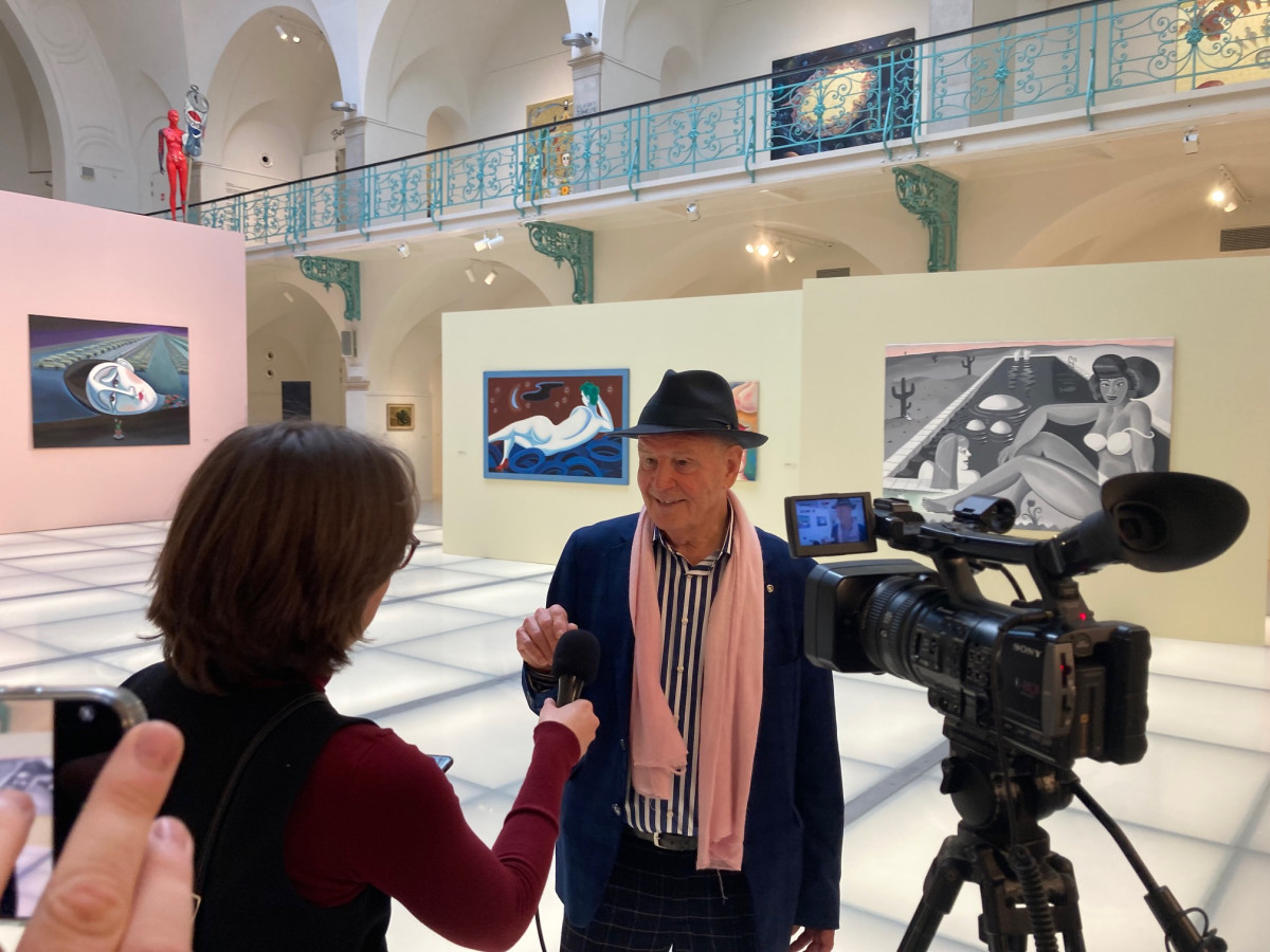 Umělec Milan Kunc na své retrospektivní výstavě v Galerie Lázně Liberec.