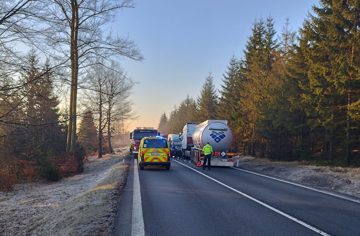 Tragické následky nehody u Svoru. Po srážce auta s kamionem zemřel člověk, další je těžce zraněný