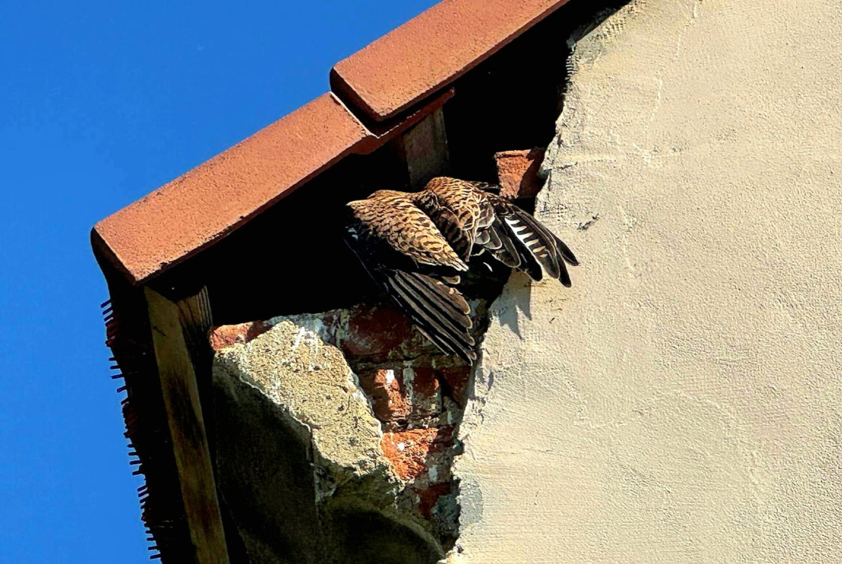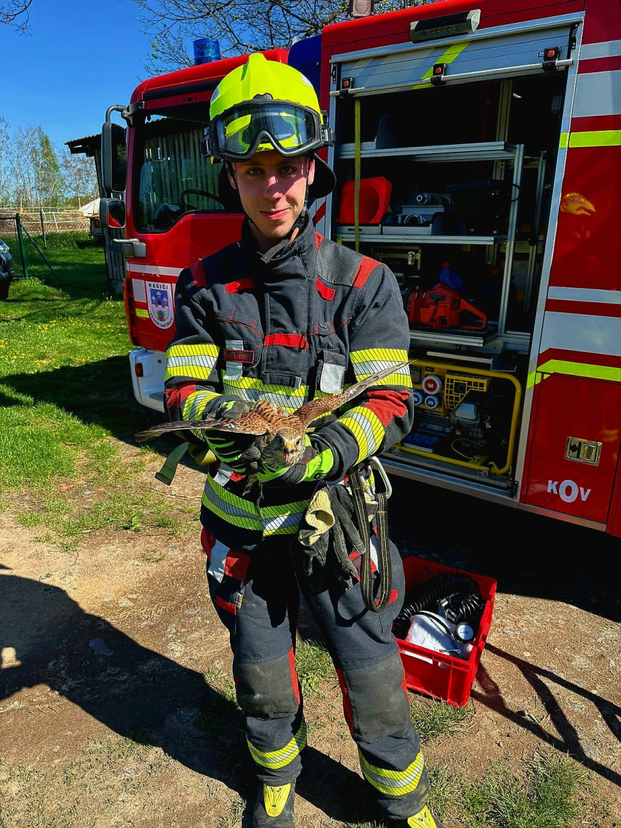 Hrádečtí hasiči zachraňovali poštolku lapenou v jutovině na kraji střechy
