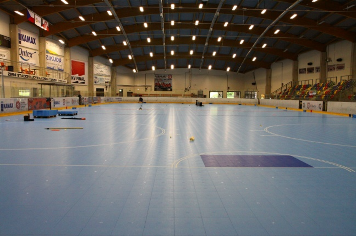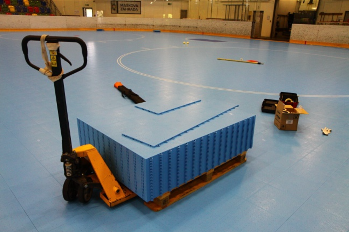 Turnovský zimák je nově v provozu i v létě. Led nahradil povrch pro sálové sporty