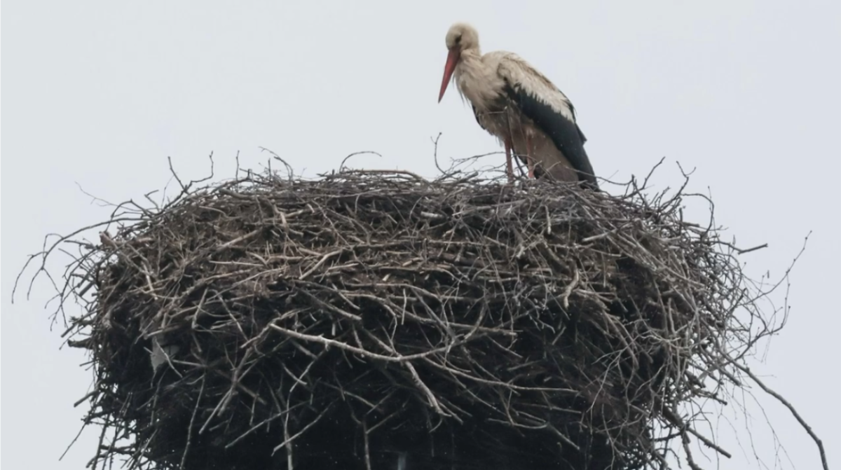 Čáp hnízdí zhruba 600 metrů od chrastavského náměstí