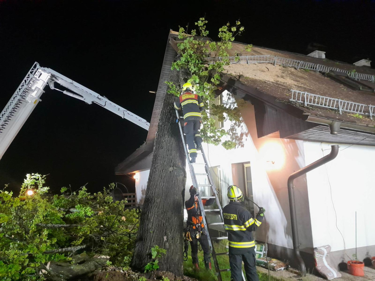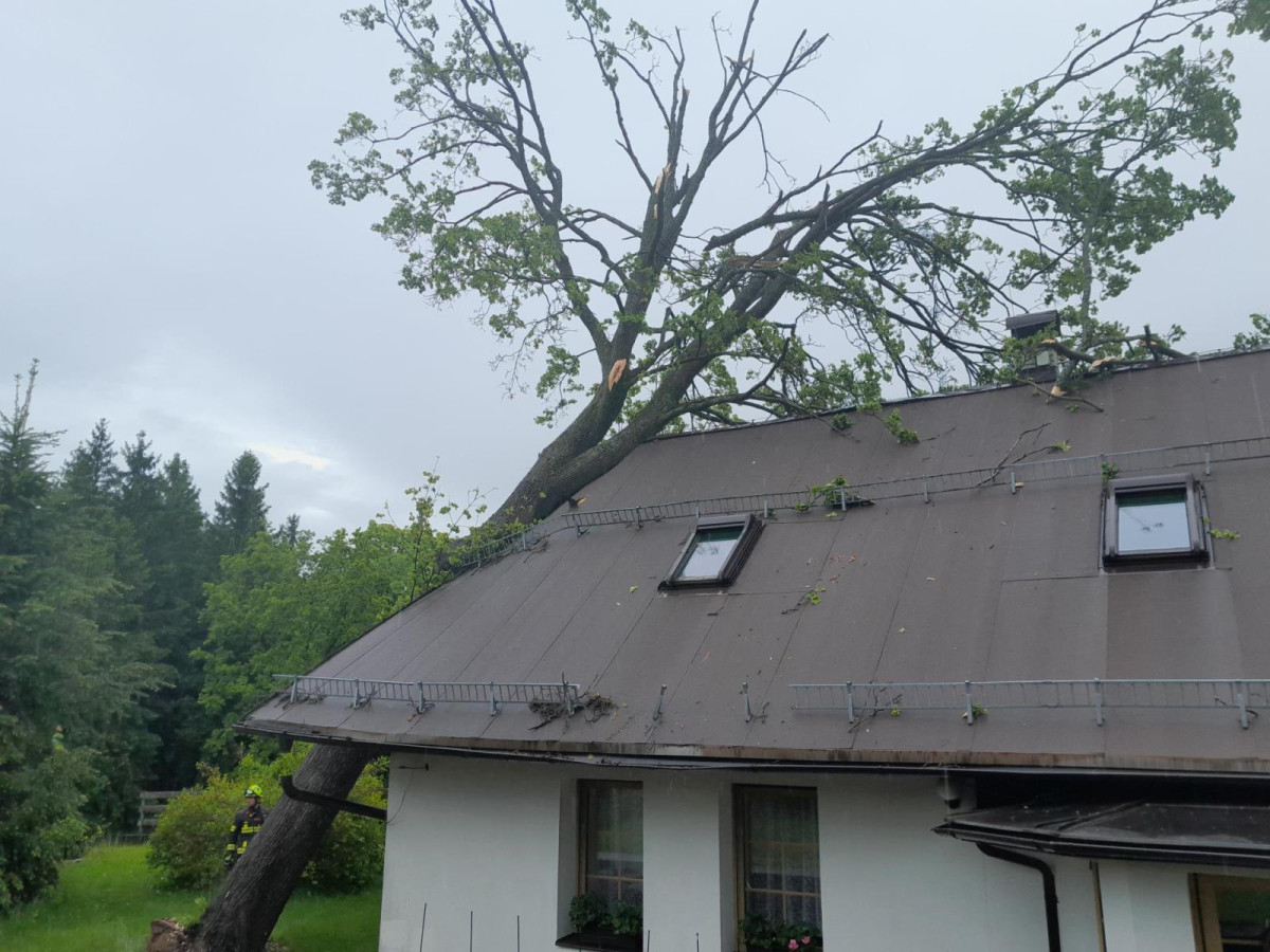 Vzrostlý strom spadl na štít domu v Liberci Kunraticích. Pomohli hasiči