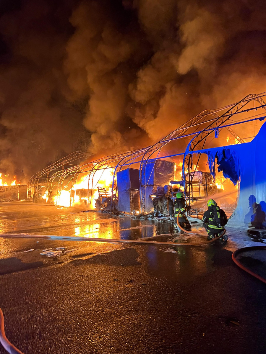 Noční požár v České Lípě. Hořela skladovací hala v Dubici
