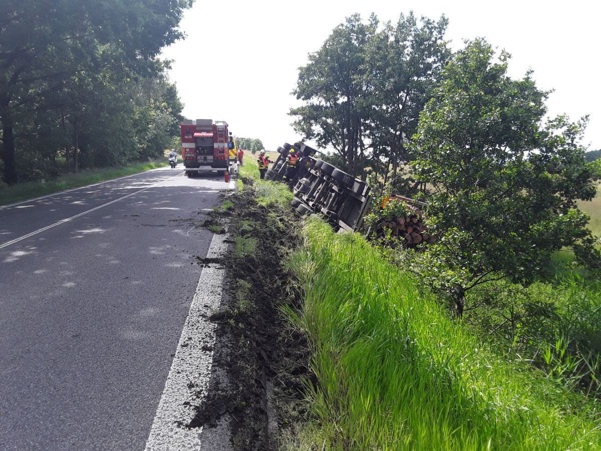 Nehoda na silnici 13 u Dětřichova. Převrátil se tam kamion se dřevem