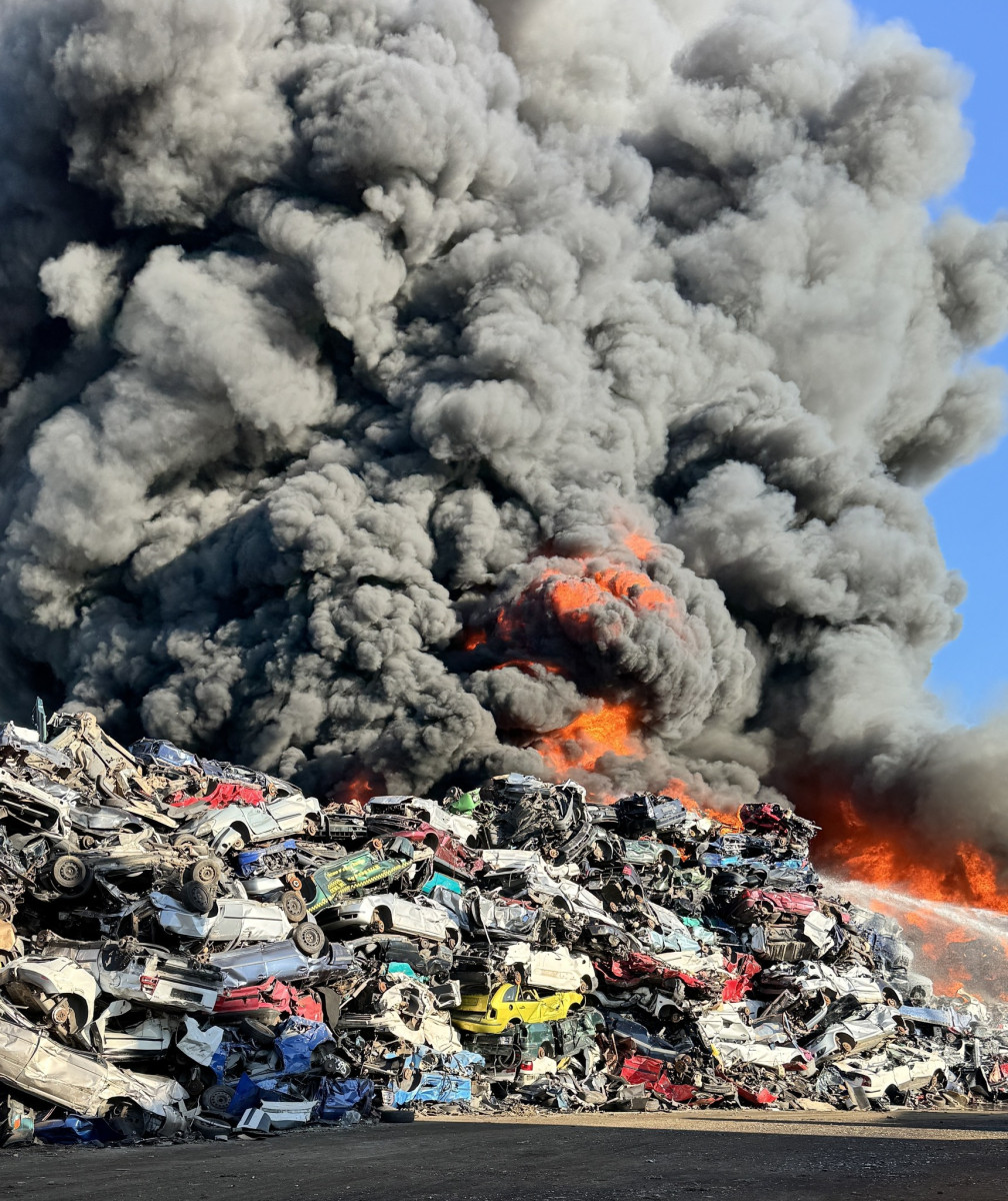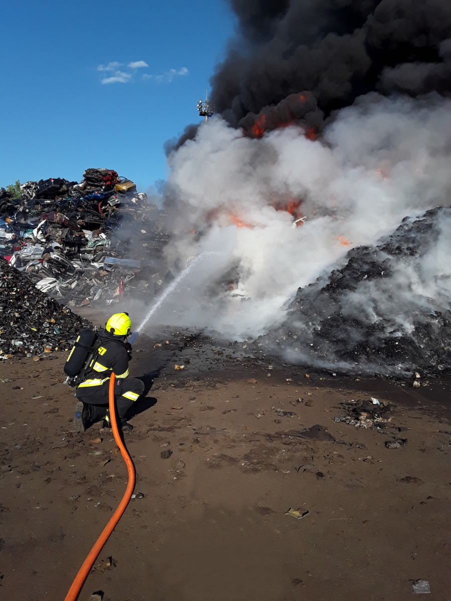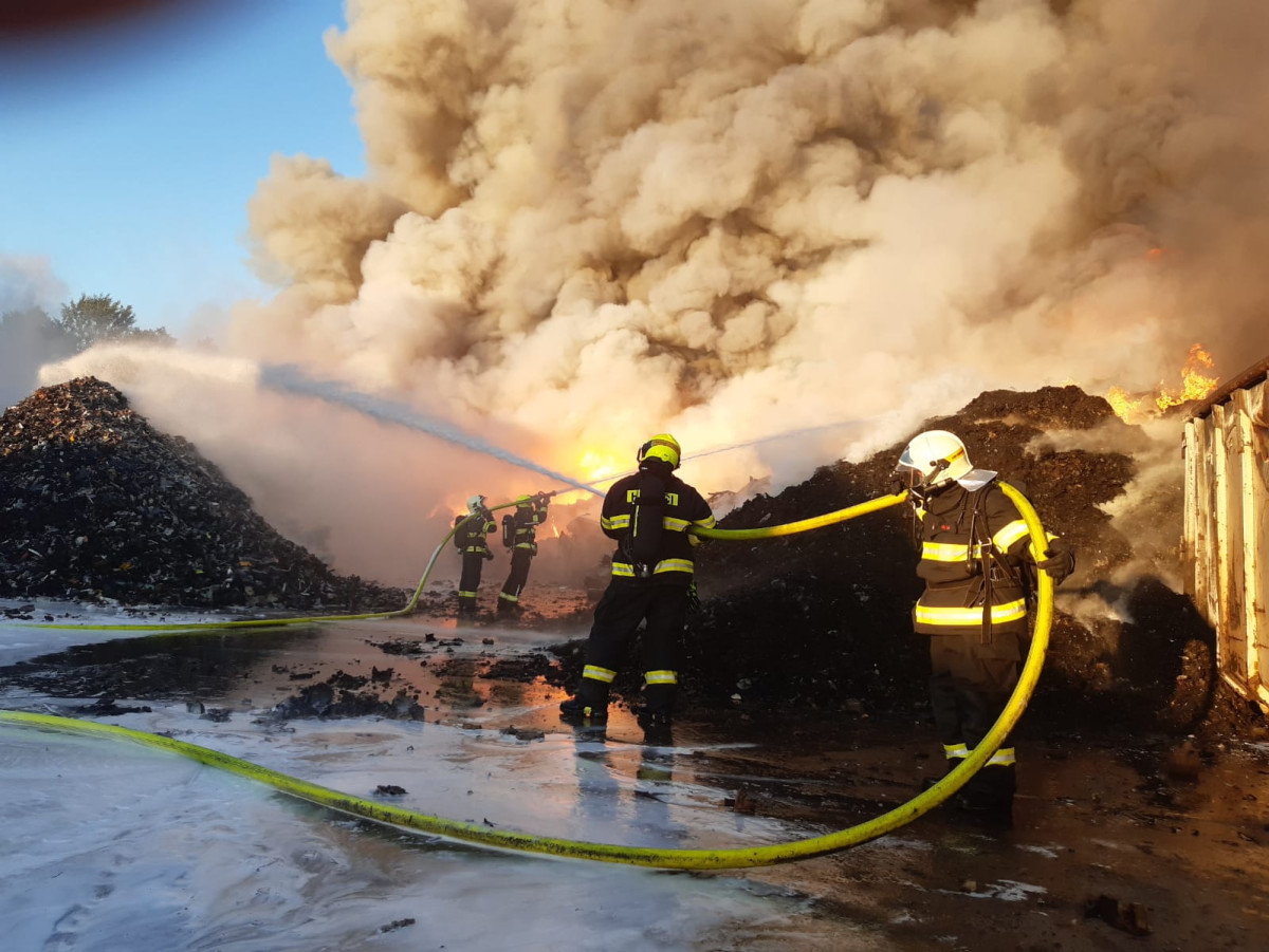 Požár skládky kovošrotu v České Lípě, hasiči s ohněm bojovali celou noc