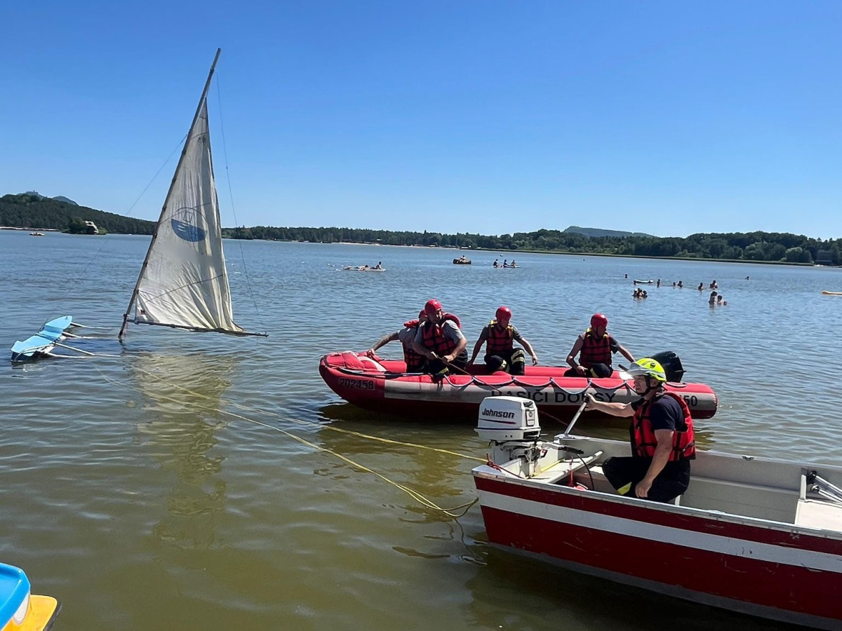 Na Máchově jezeře se částečně potopil katamarán, tři zranění se dostali na břeh