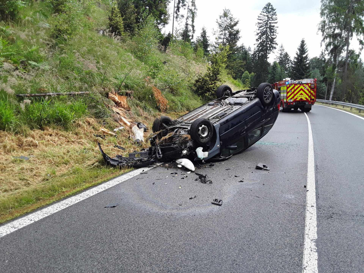 Auto skončilo po nehodě v Doksech na střeše, řidička vyvázla s lehkým zraněním