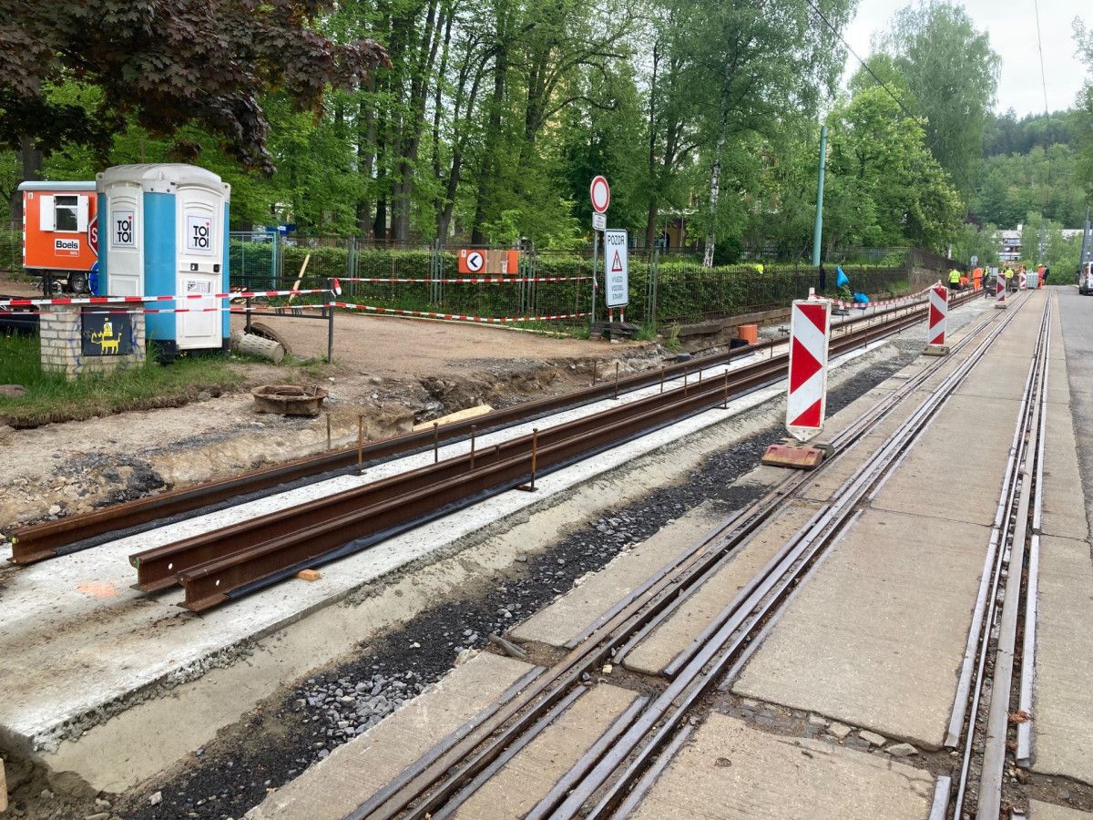 V Liberci pokračuje oprava trati u Horizontu, tramvaje jezdí, silnice je uzavřena
