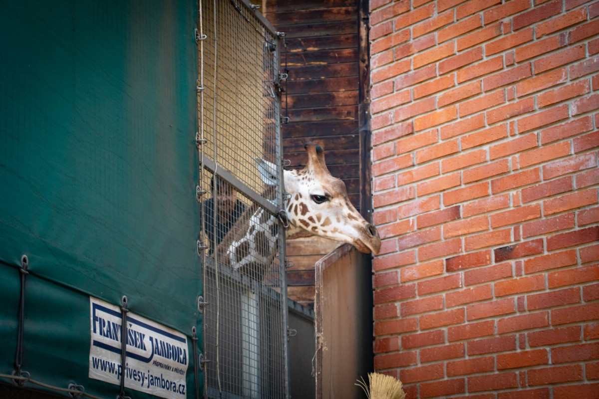 Z liberecké zoo odjel kvůli rekonstrukci pavilonu samec žirafy. V předklonu
