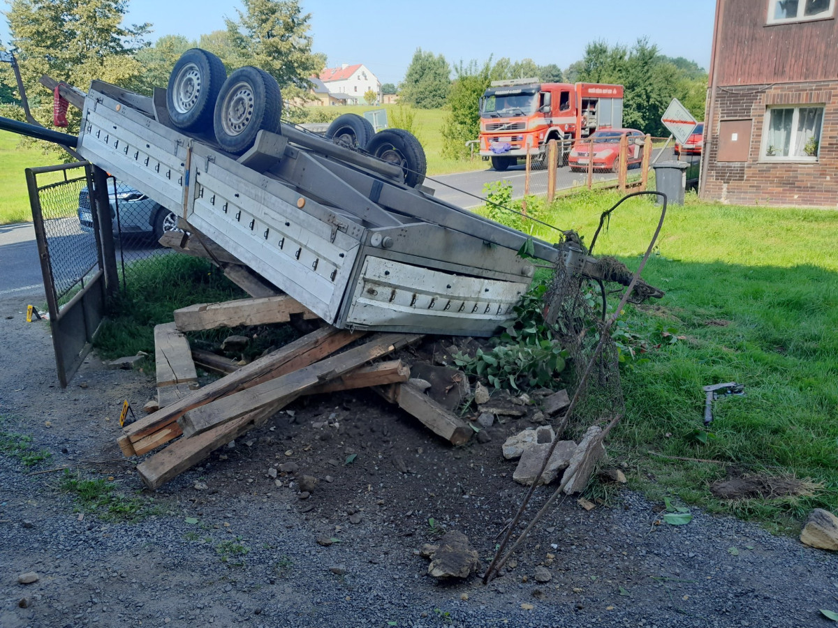Nehoda ve Sloupu. Auto s přívěsem se převrátilo