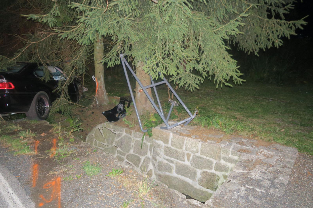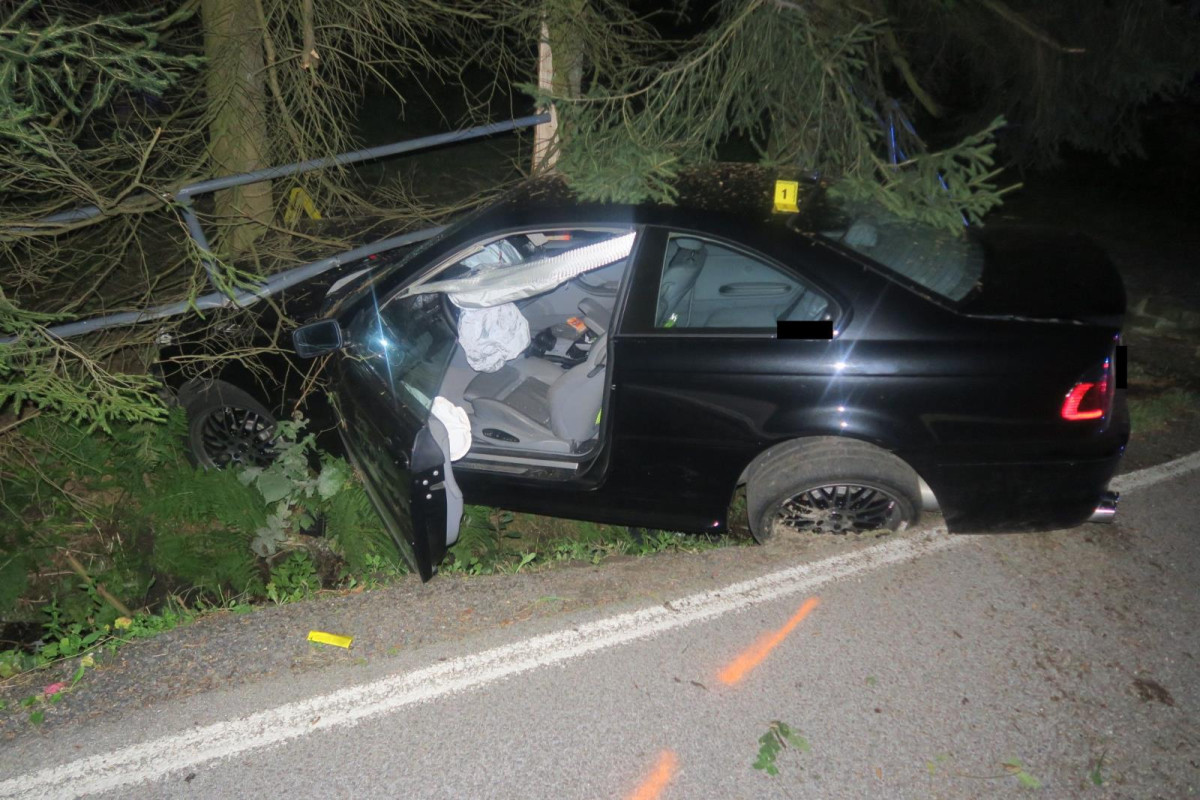 Mladý řidič nezvládl v Janově své BMW a narazil do stromu. Vyvázl s lehkým zraněním