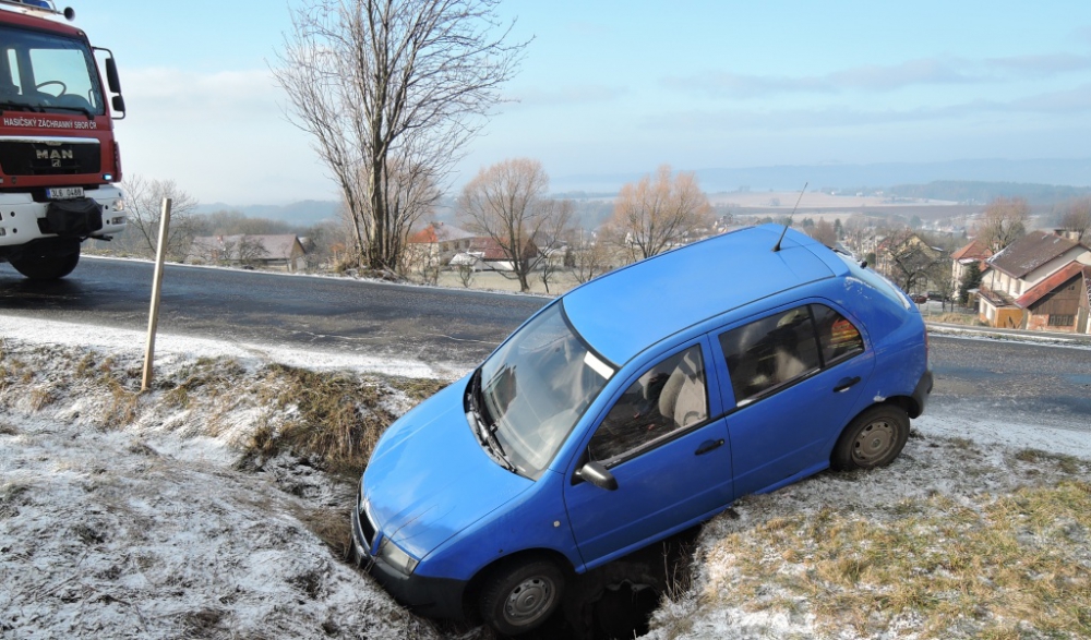 Auto sjelo na Semilsku ze silnice do čtyřmetrového srázu. Náraz ztlumila sněhová peřina více...