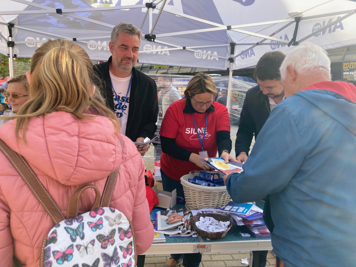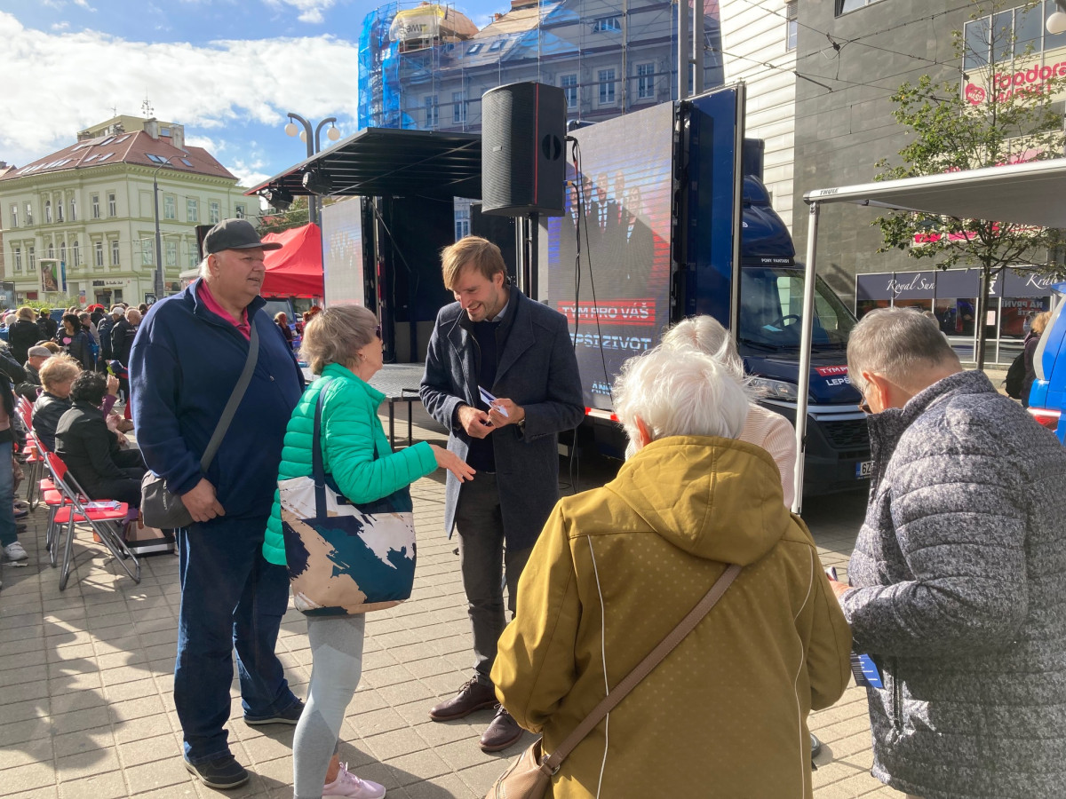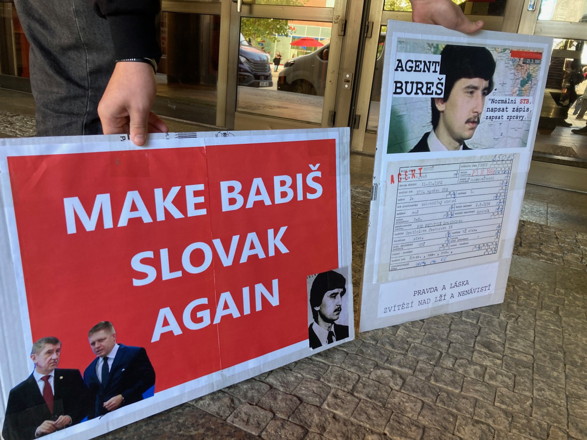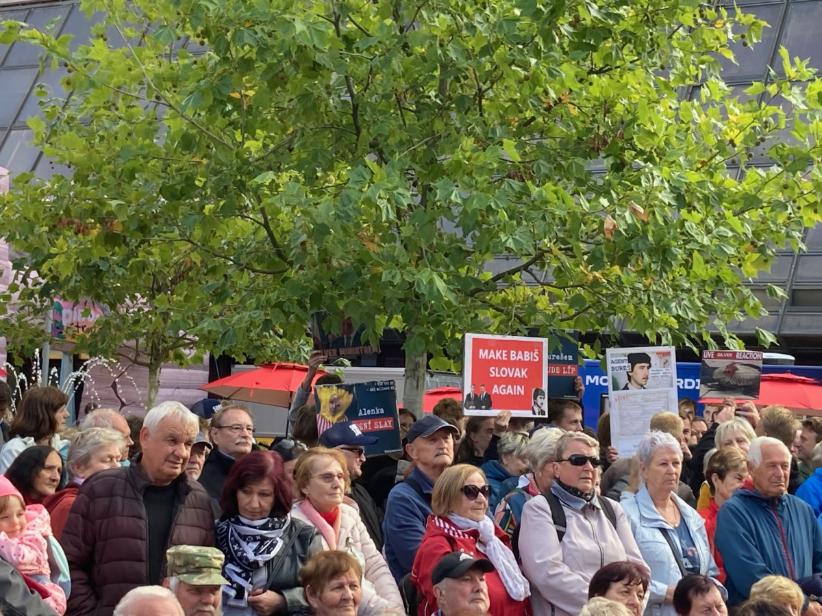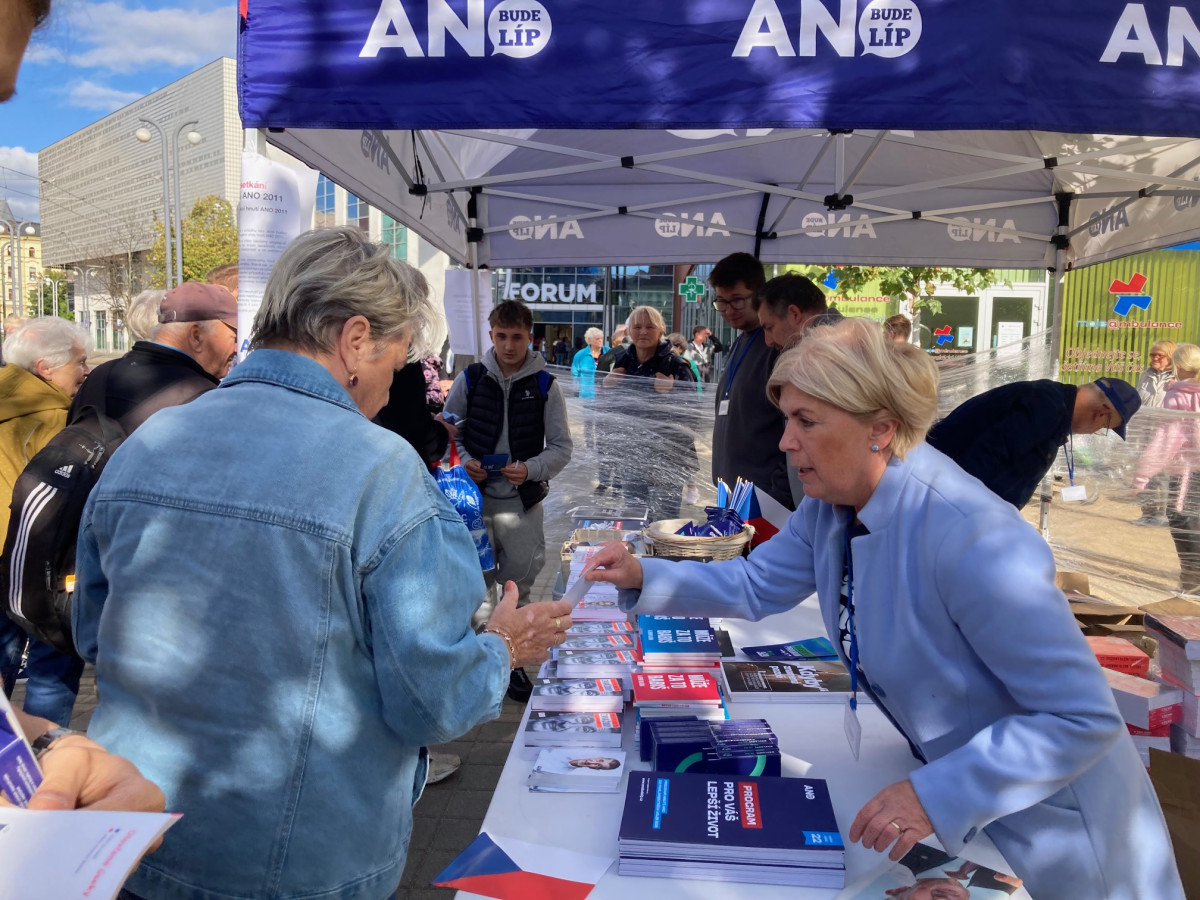 Kšiltovky, trička a fotka se známou tváří. Na mítink ANO dorazilo na 350 lidí, včetně odpůrců
