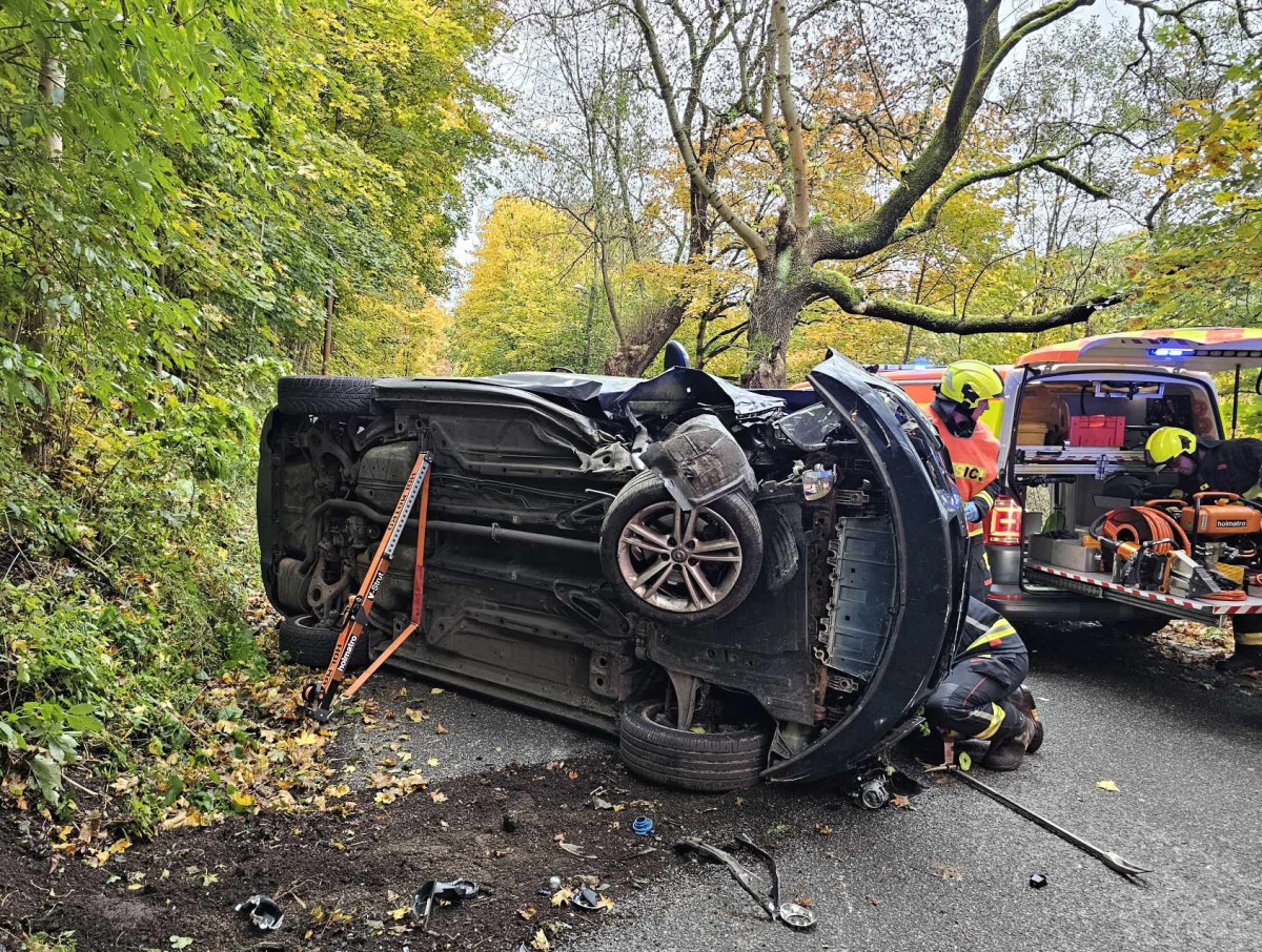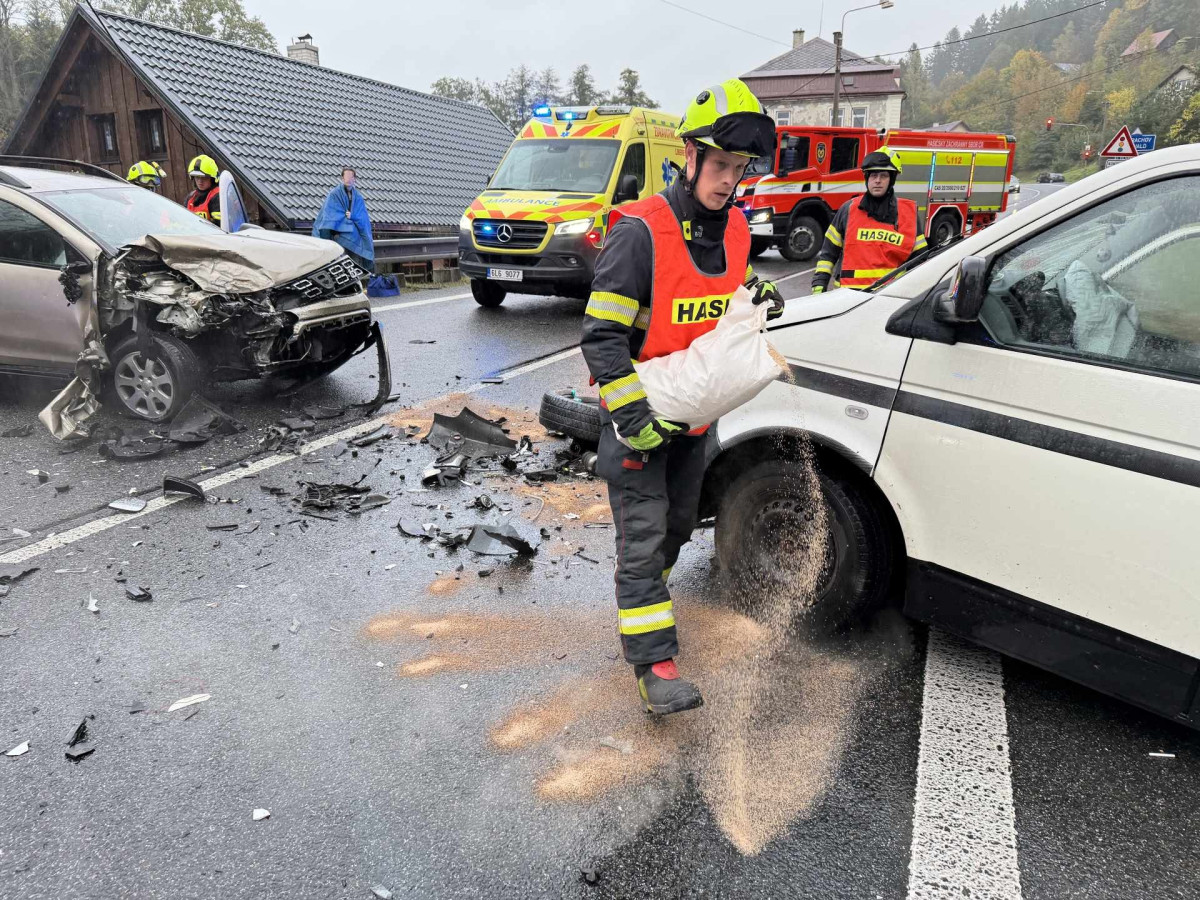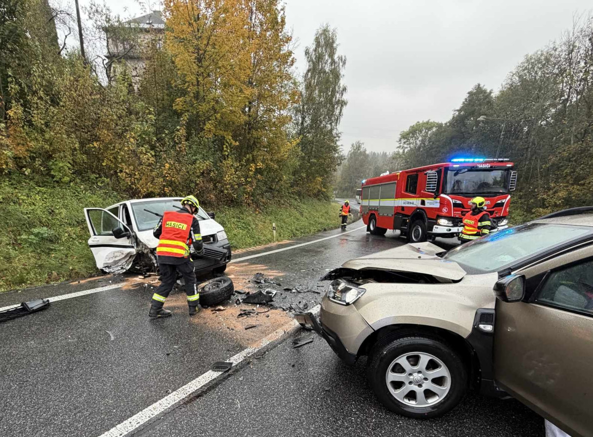 Při nehodě v Lukášovské ulici museli hasiči z auta vyprostit jednoho z cestujících