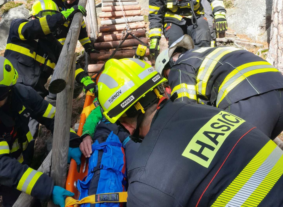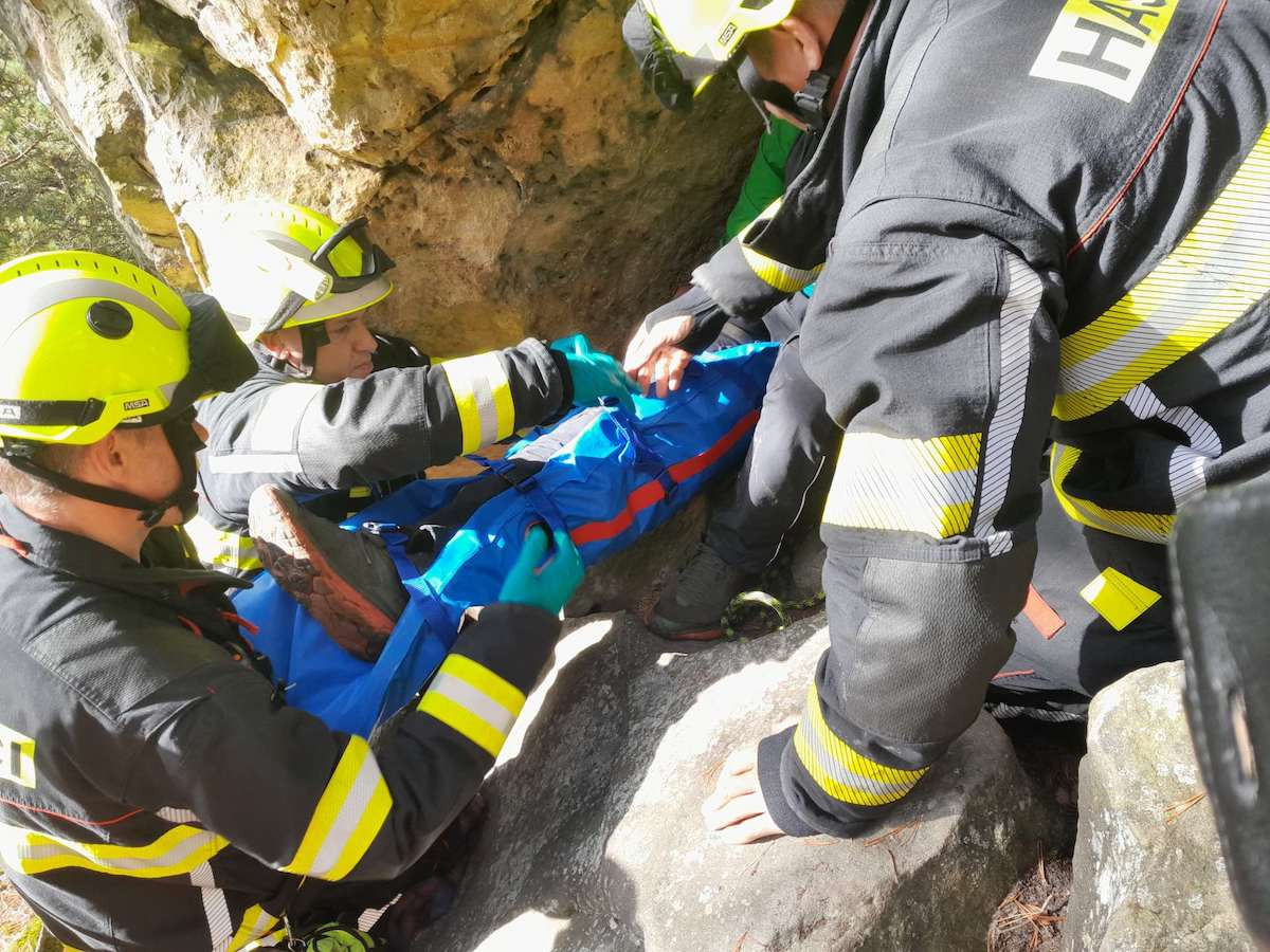 Náročný transport. Hasiči zasahovali v Suchých skalách u zraněného lezce