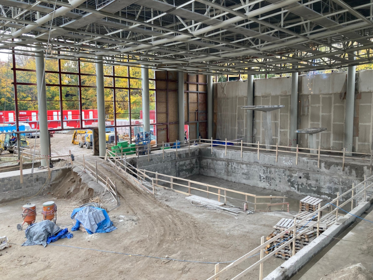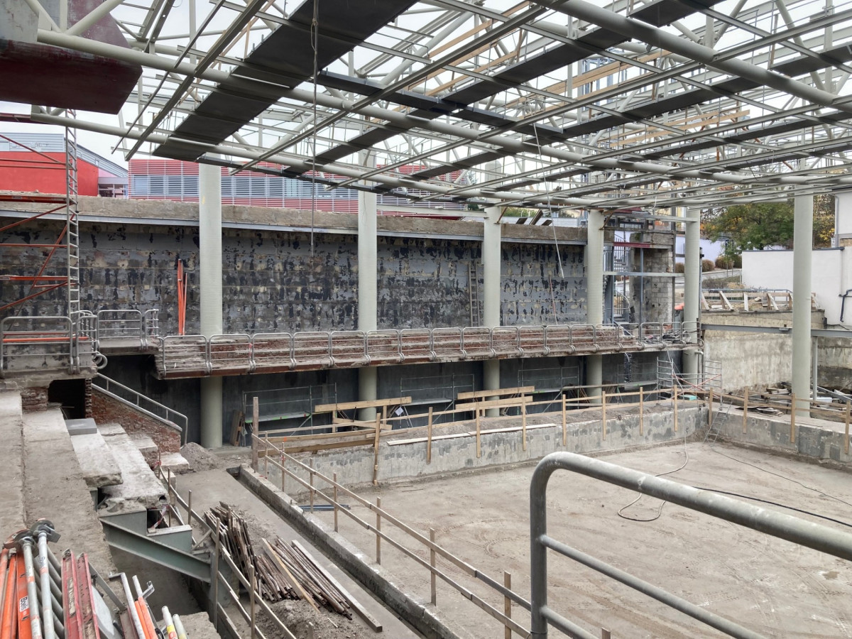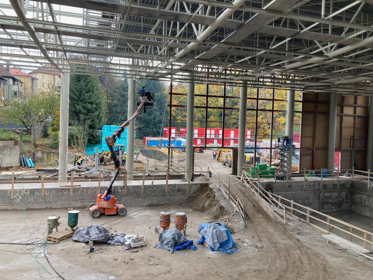 Pomalu končí bourací práce a začíná se budovat. Bazén se rekonstruuje rok