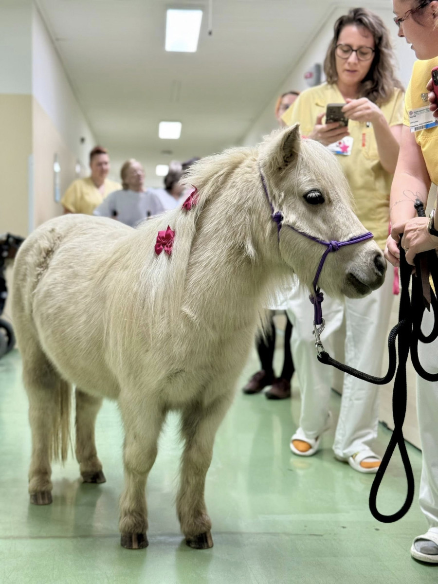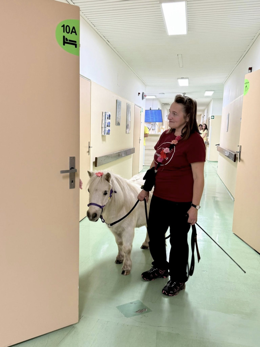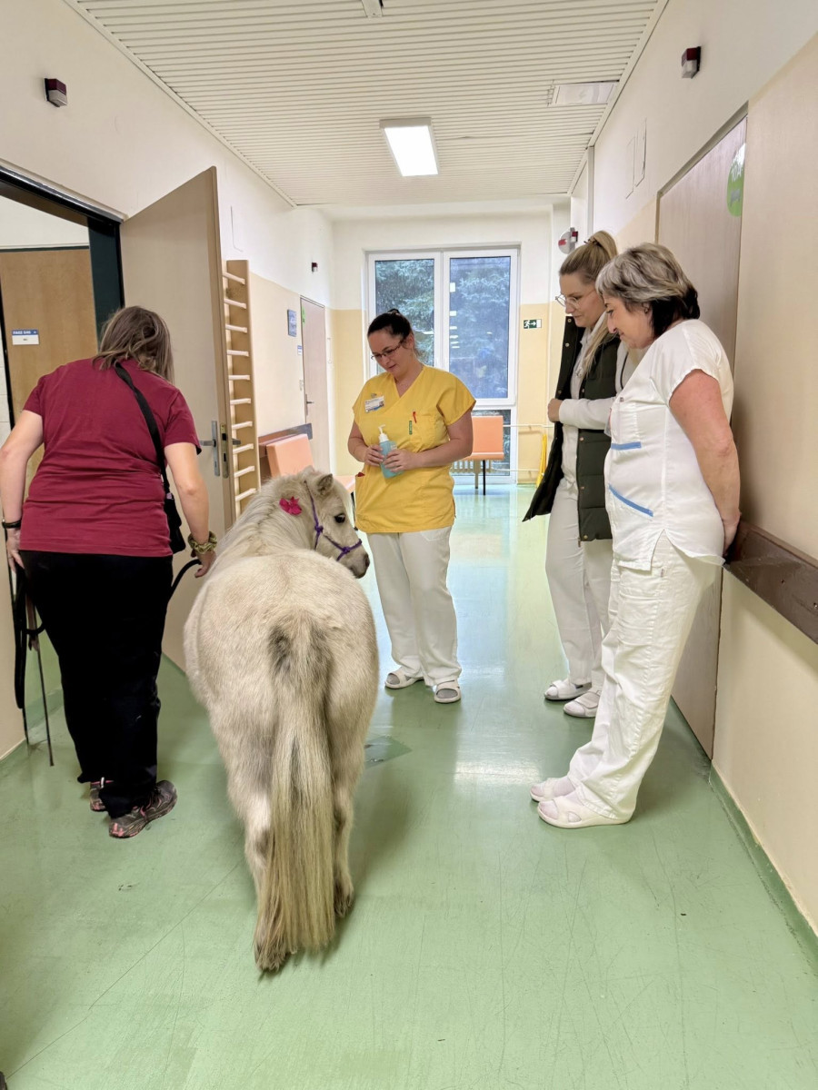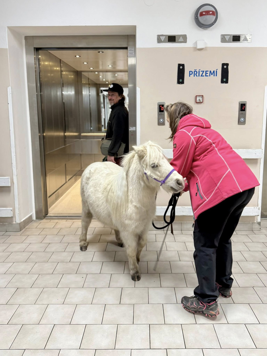 Nečekaná návštěva frýdlantské nemocnice. Za pacienty přijel výtahem miniaturní kůň