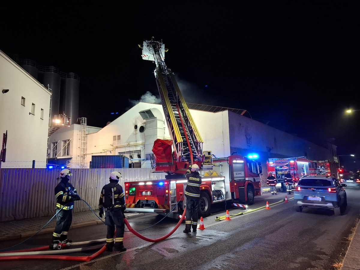 Zásahu hasičů u požáru v průmyslovém objektu v Lomnici. Uvnitř nikdo nebyl